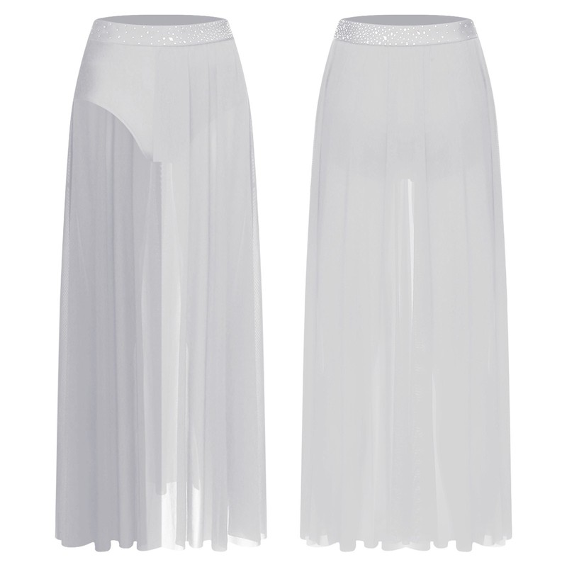 The front slit design on the mesh skirt creates a fashionable and modern look, adding a sense of dynamism and allure when dancing.