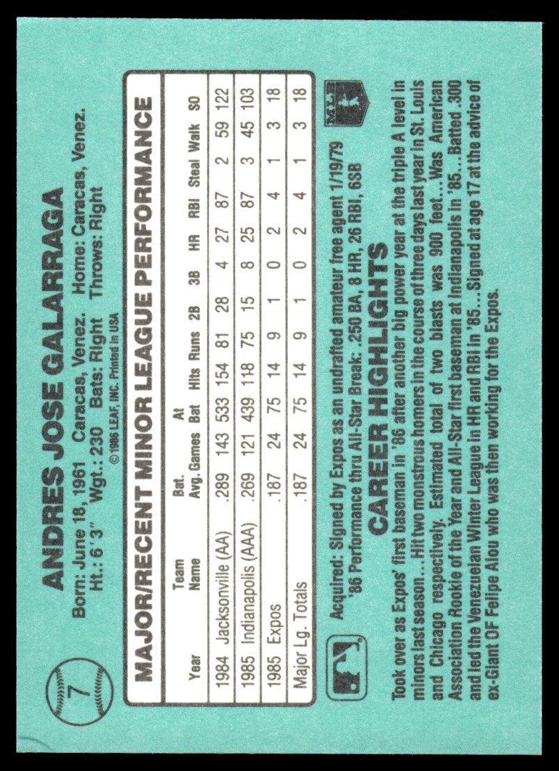 | 1986 Donruss The Rookies Andres Galarraga Montreal Expos #7 |