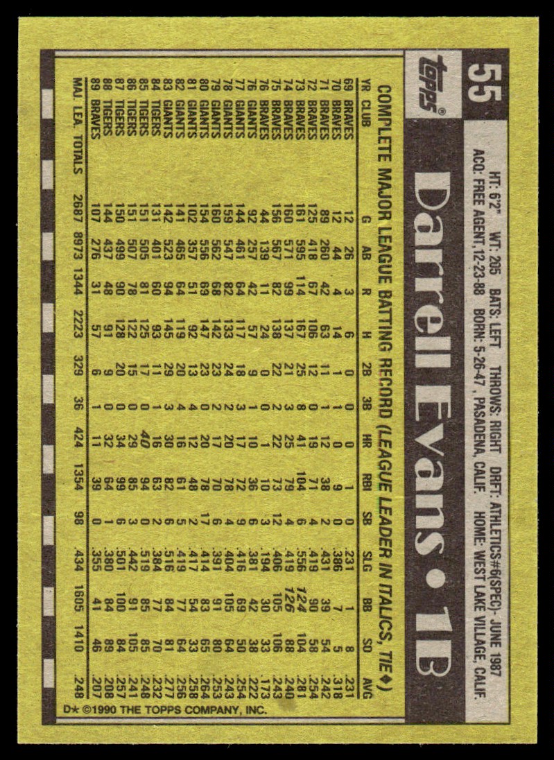 | 1990 Topps Darrell Evans Atlanta Braves #55 |