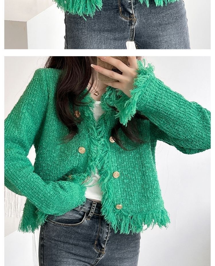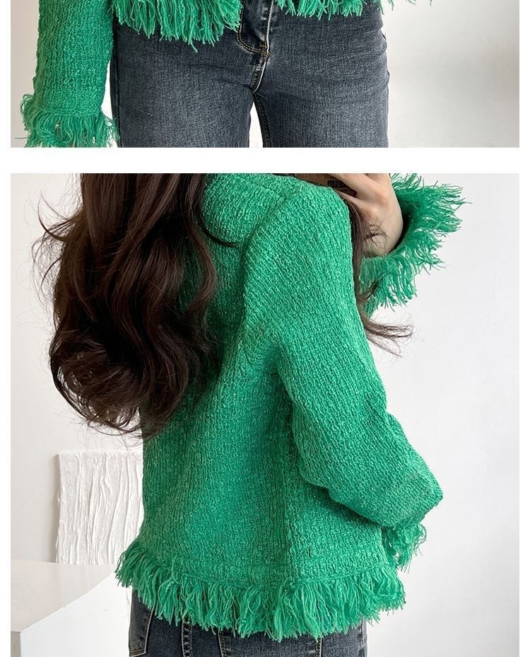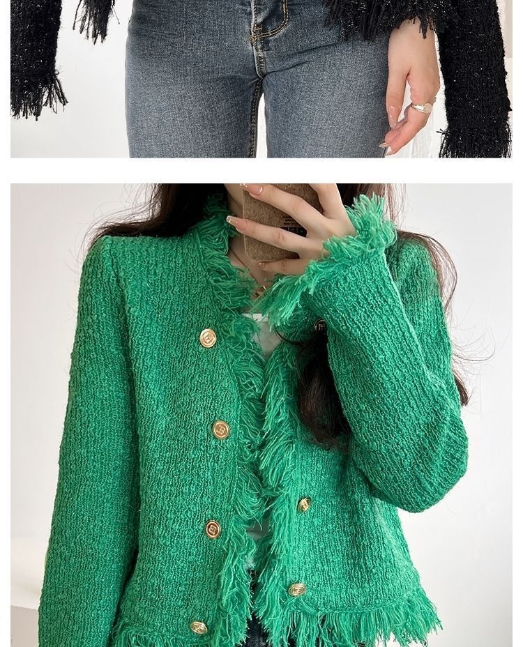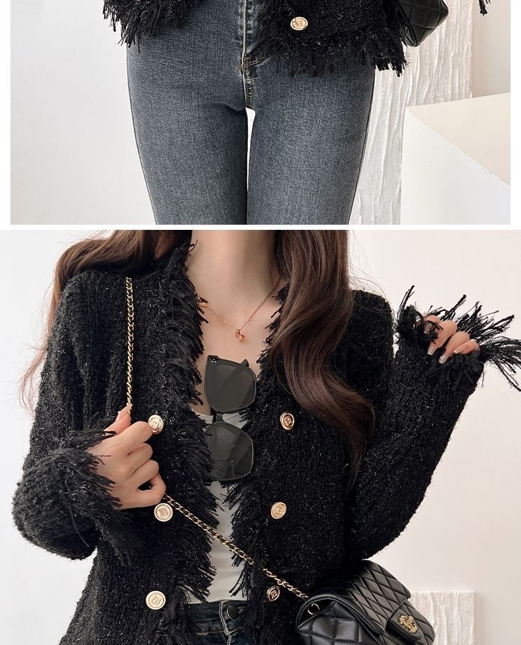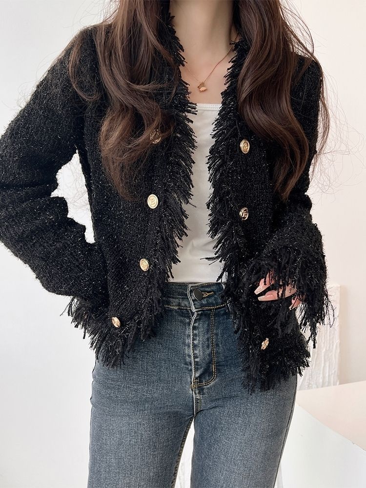 2025 Autumn and Winter, Cardigan Sweater Jacket V-neck Fringed Design, Top
