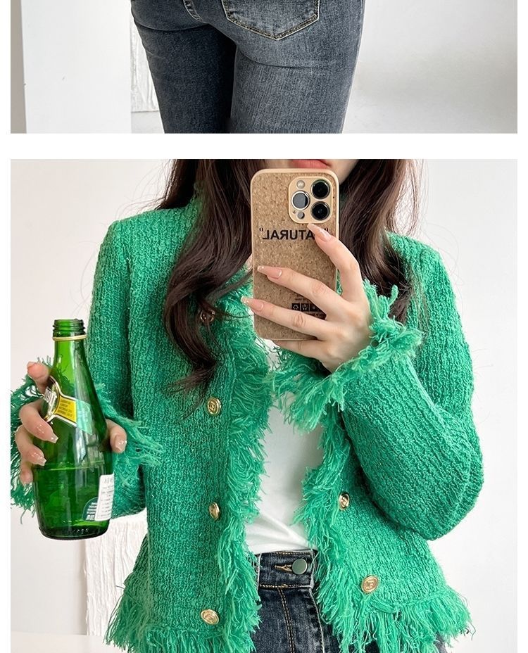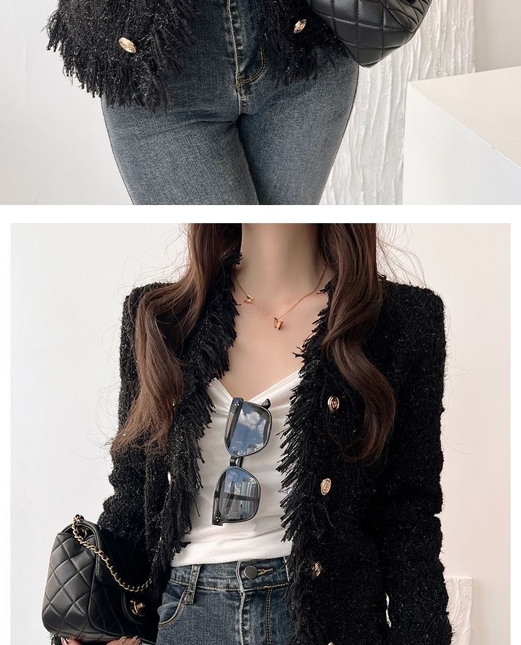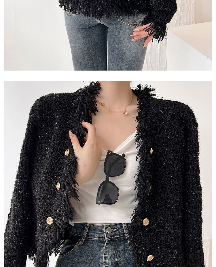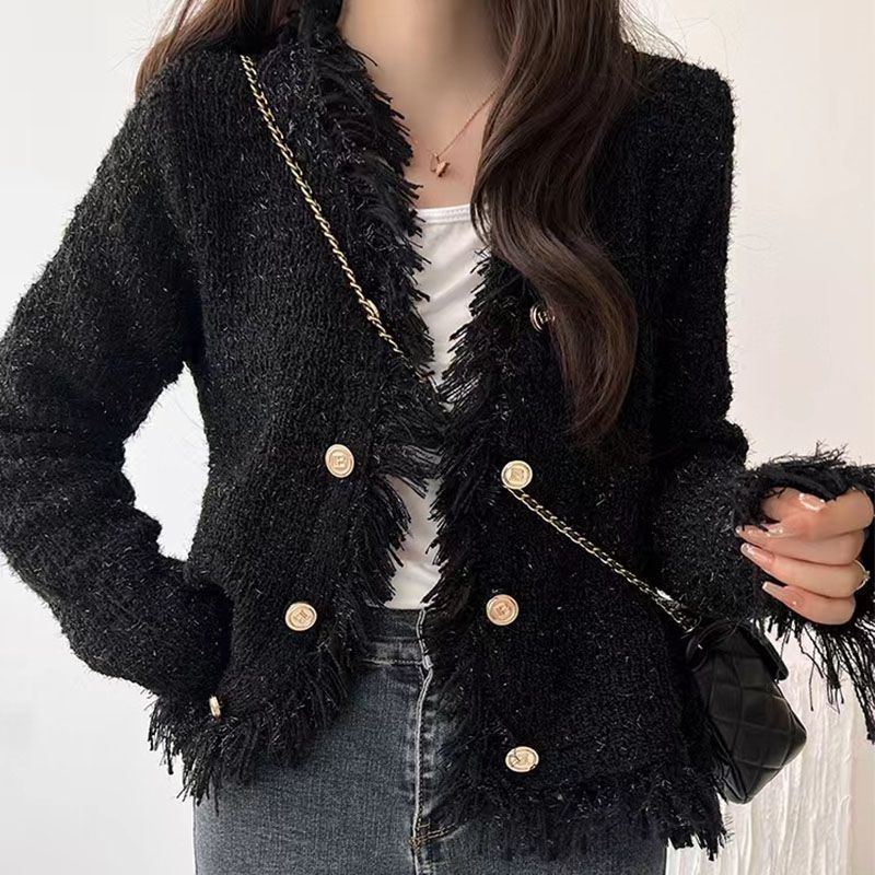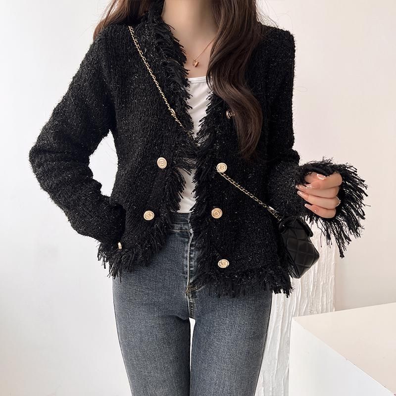 2025 Autumn and Winter, Cardigan Sweater Jacket V-neck Fringed Design, Top