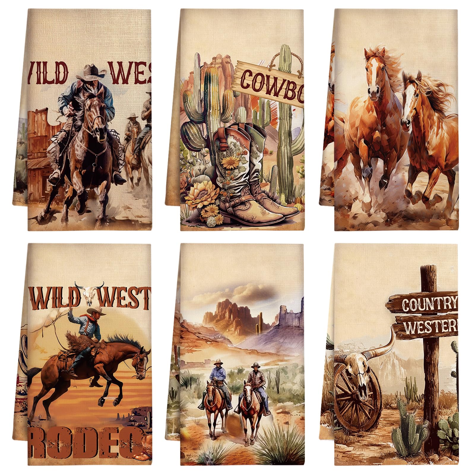 - Exquisite Design: These western kitchen towels adopt a natural earthy yellow color design, printed with various patterns, horses, cowboy and more. It also has the words "COWBOY " "WILD WEST" "RODEO" "COUNTRY WESTERN", creating a fresh and natural atmosphere