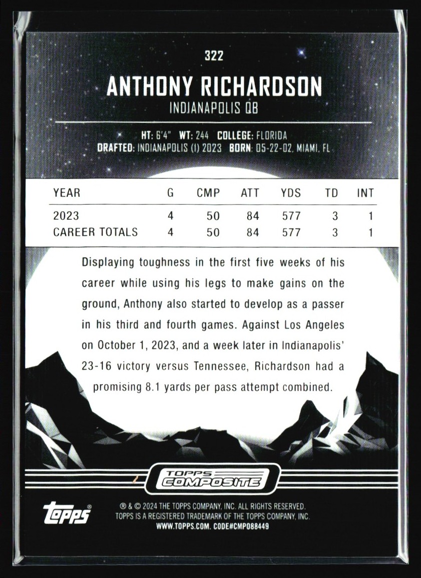 2023 Topps Composite Anthony Richardson Rookie Indianapolis Colts #322