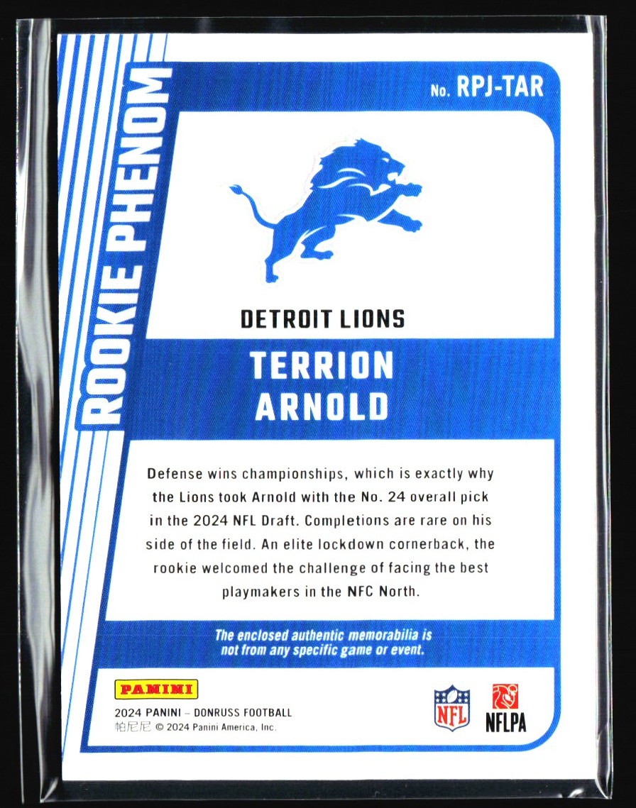 2024 Clearly Donruss Rated Rookie Autographs Terrion Arnold Auto Detroit Lions
