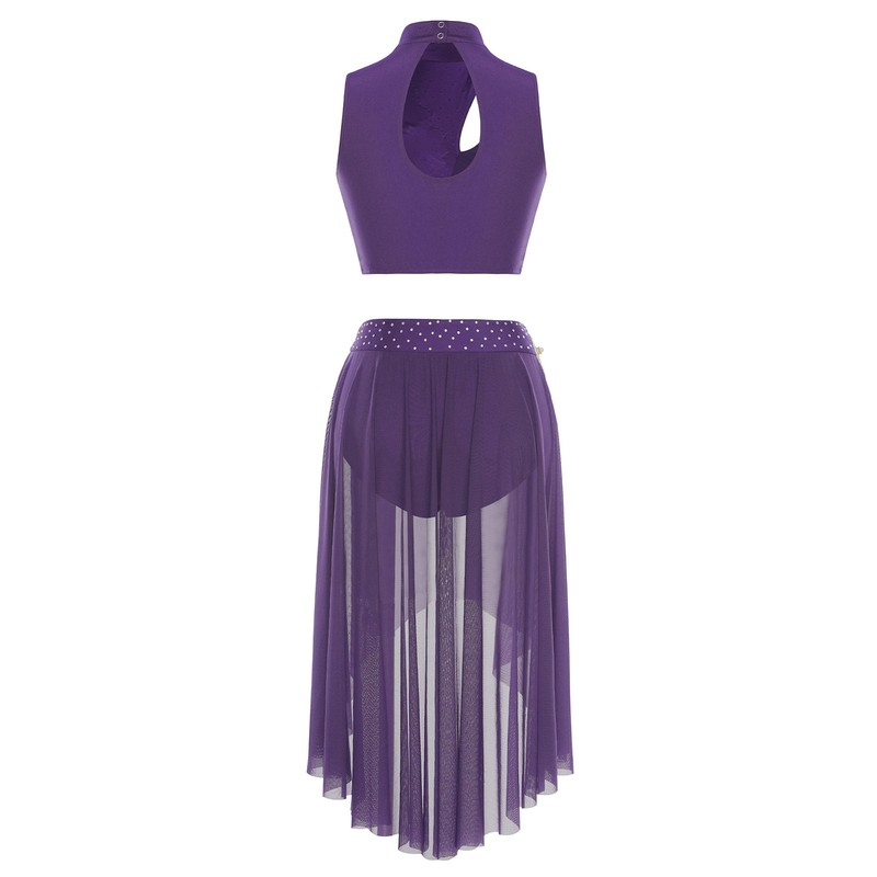 The irregular mesh skirt has a front slit and is flowy, creating a beautiful visual effect as you move, which enhances the gracefulness of your dance moves and is ideal for lyrical dance, belly dance, and samba where fluidity is key.