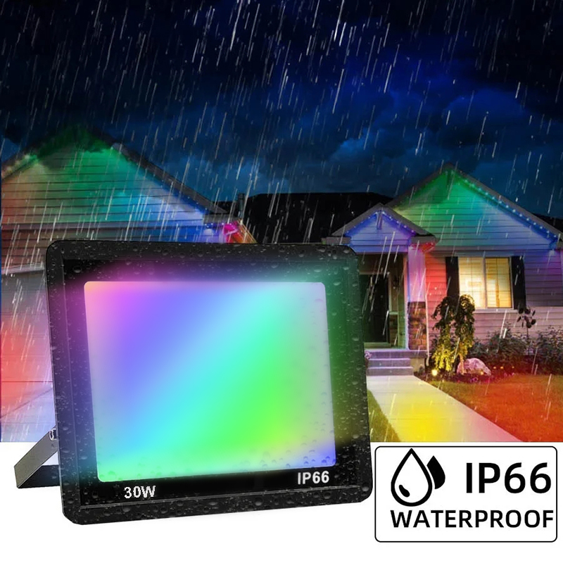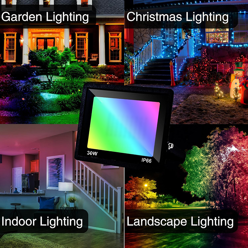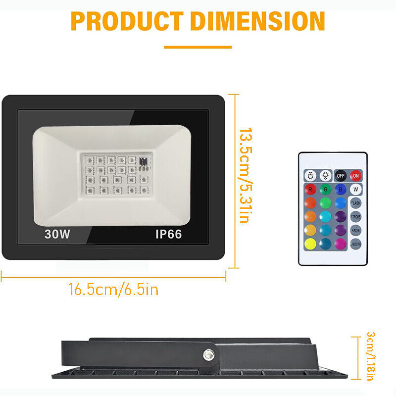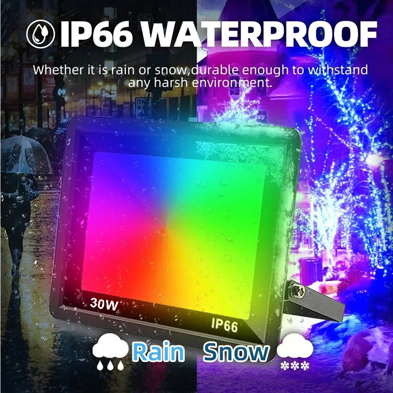 IP66 wasserdicht: Made of Die-cast aluminum housing and tempered glass, this flood security light can work well in rain, sleet, snow. Suitable for both indoor and outdoor lighting.RGB floodlights hold their own when exposed to rain and temperature changes -20℃~40℃.
