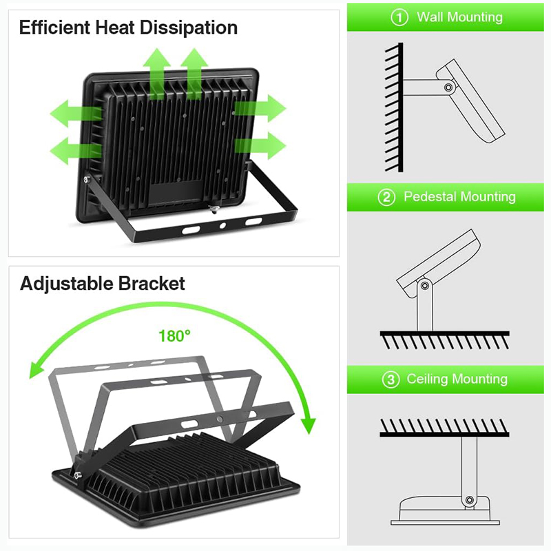 Effiziente Wärmeableitung: LED-Flutlicht hat eine Lebensdauer von etwa 30.000 Stunden.Sein Aluminiumheizkörper verfügt über eine hervorragende Wärmeableitung und seine wasserdichte Antriebsleistung mit IC-Antriebsstromschutz, der die Auswirkungen von Strom auf den Lampenkörper reduzieren und so die Lampenlebensdauer verlängern kann.