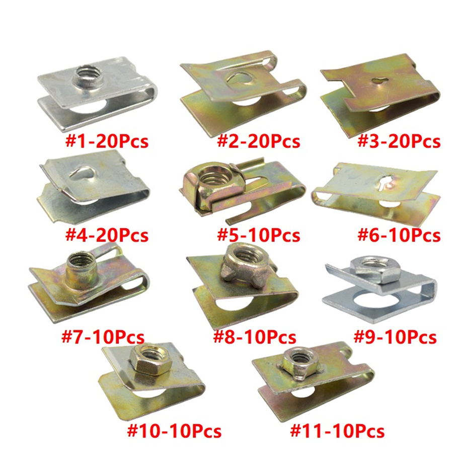 150PCS Metal U-Type Base Fender Bumper Leaf board Fastener Clip U Type Gasket FenderMetal clips
