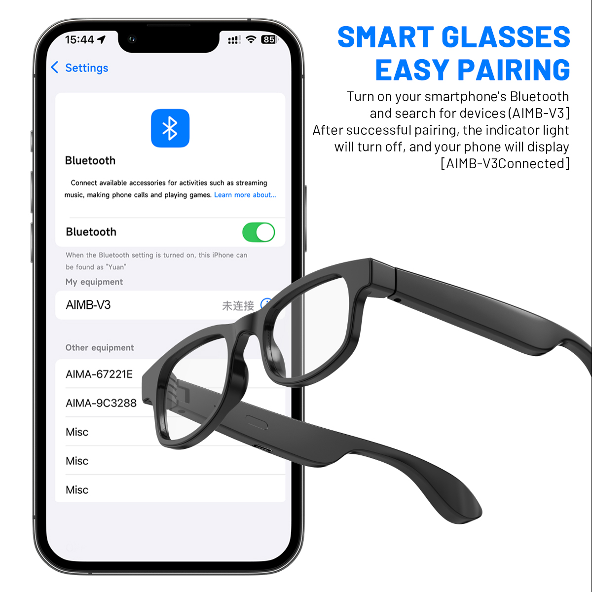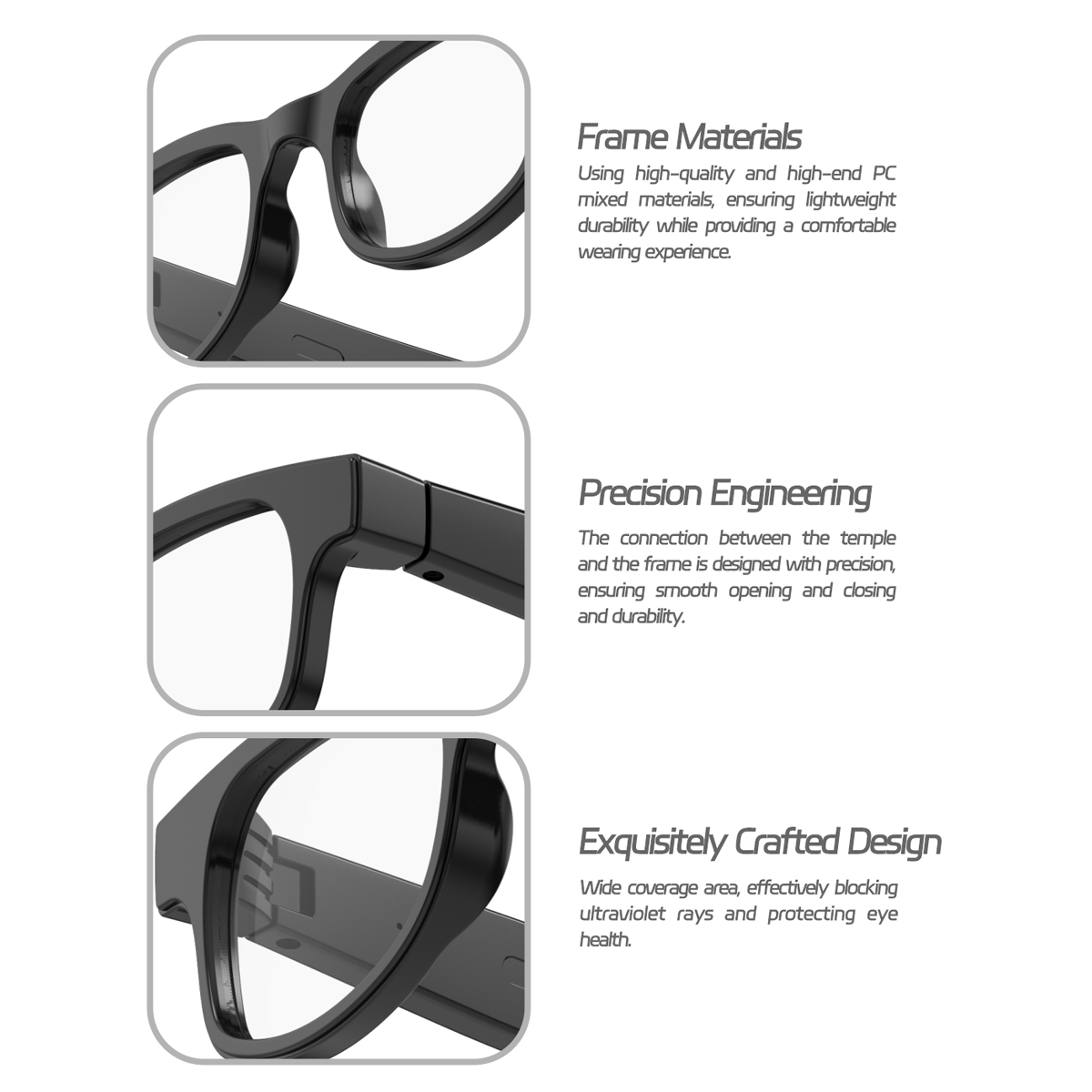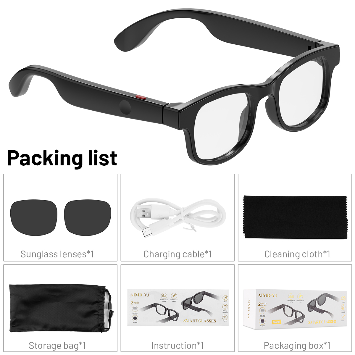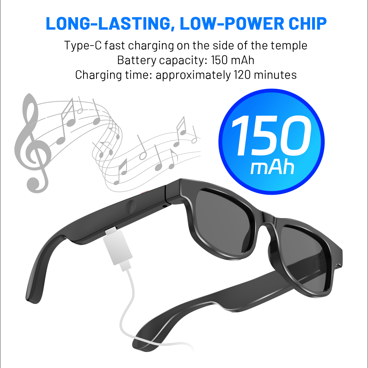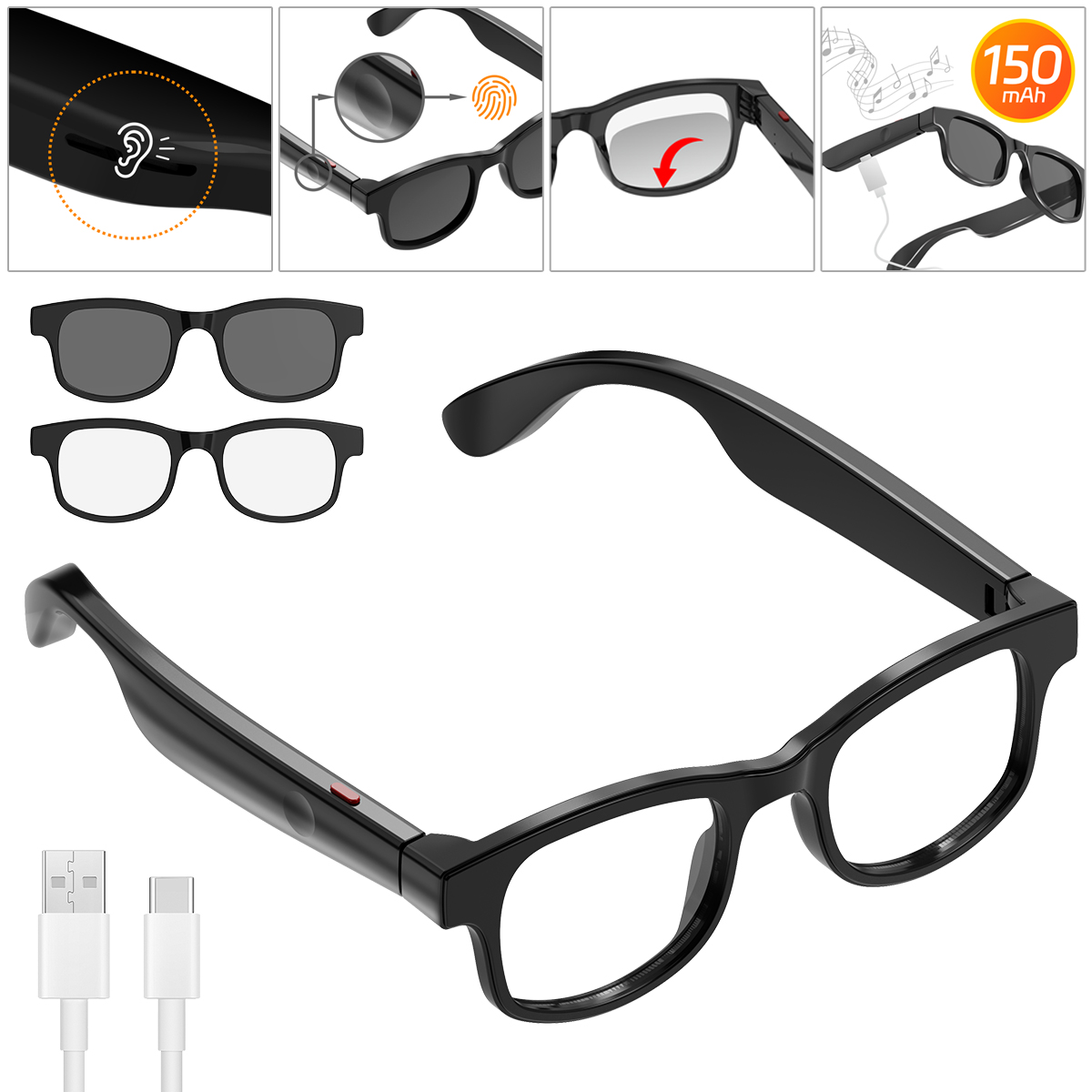 1. Smart glasses design, integrating Bluetooth earphones and sunglasses into one