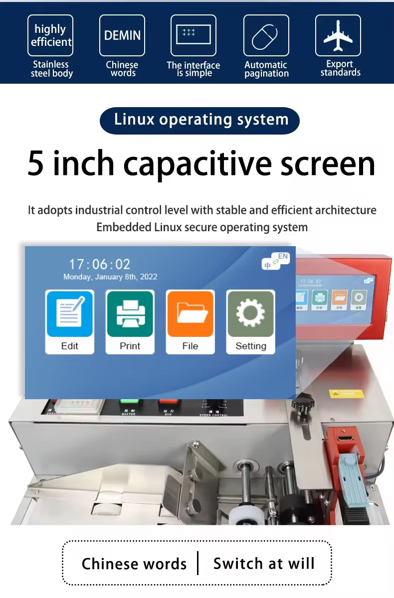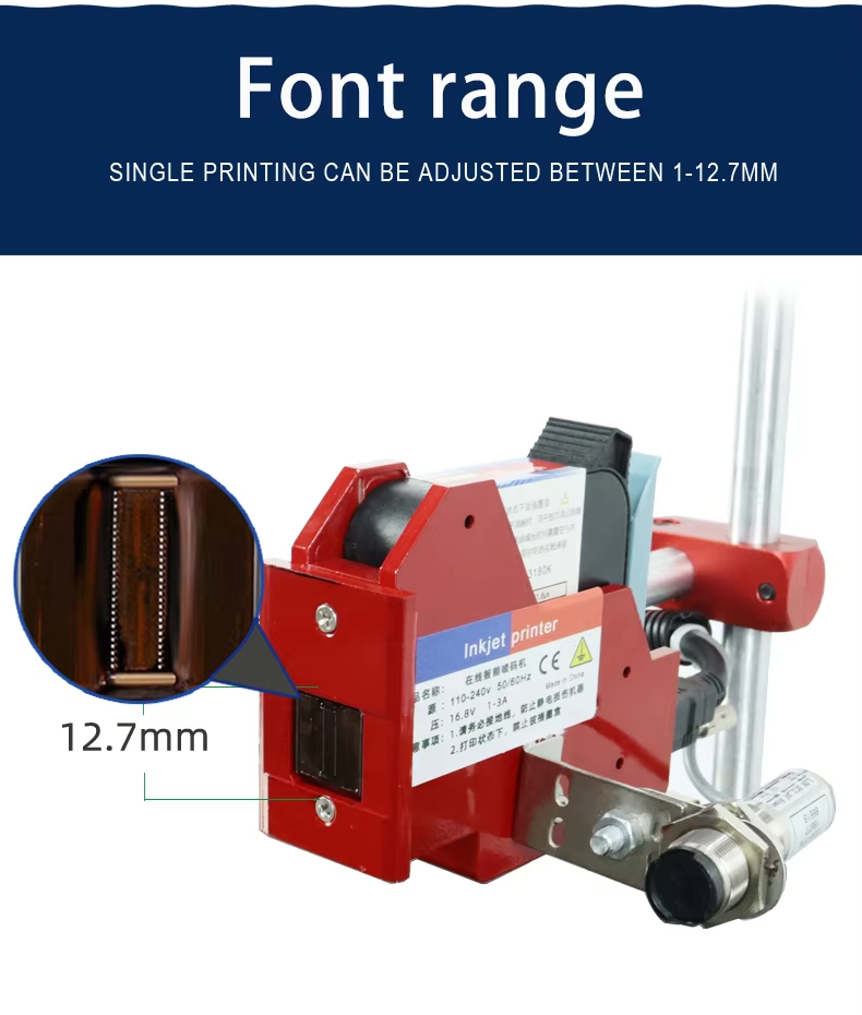 A:The machine can print on paper boxes, plastic, metal, glass, wood, cloth and other materials; Machines are available in height 1.27 cm, 2.54 cm, 5 cm, 10 cm or larger sizes