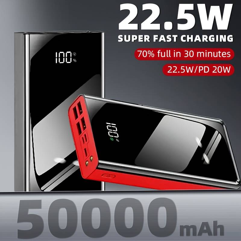 50000mAh Large Capacity Mobile Power Bank Fast USB Charger With LED Flashlight