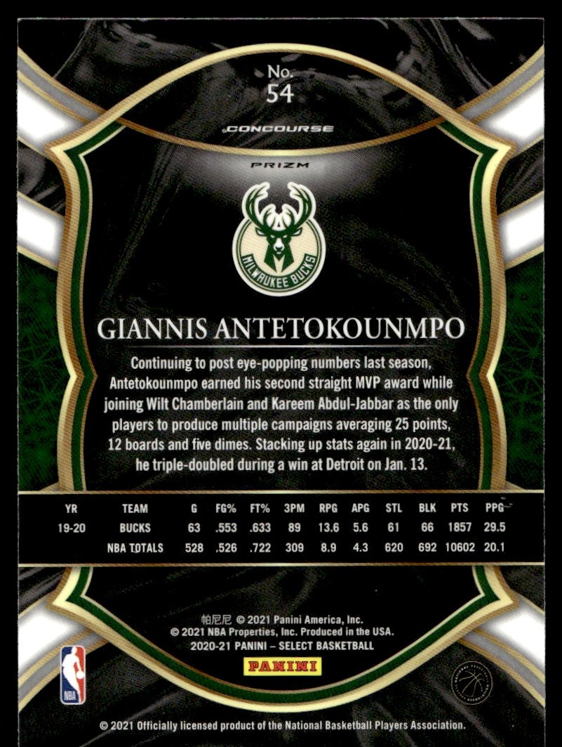 2020-21 Panini Select Giannis Antetokounmpo Milwaukee Bucks #54