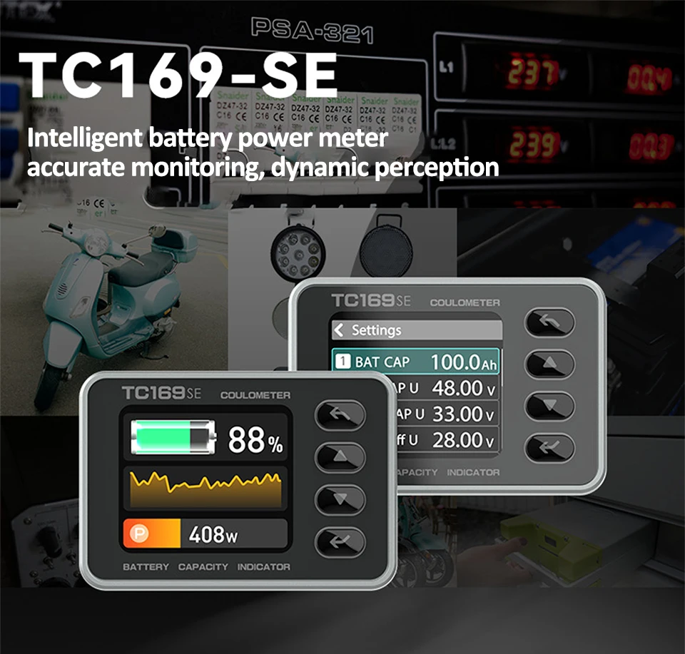 TC169SE Coulomb Meter DC6-60V Battery Voltage and Current Meter High-Precision Color Screen Battery Capacity Display Tester