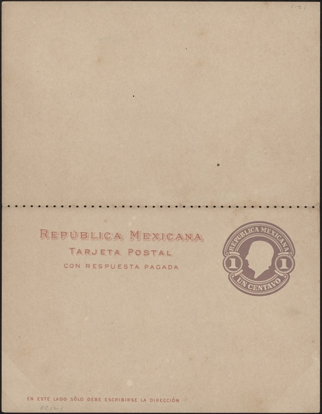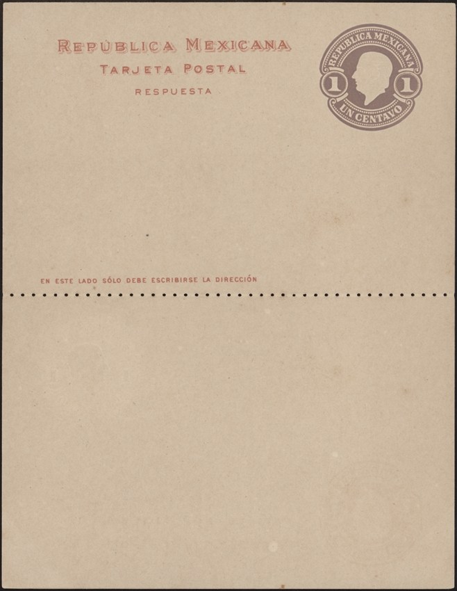 MEXICO, 1910. Paid Reply Post Card PC 118. Type IIB, Mint