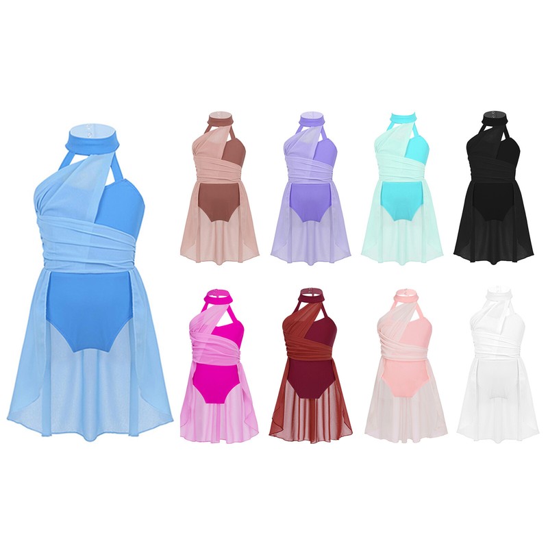 Das Tanzbody-Kleid besteht aus Polyester und Chiffon und ist von Hand waschbar.