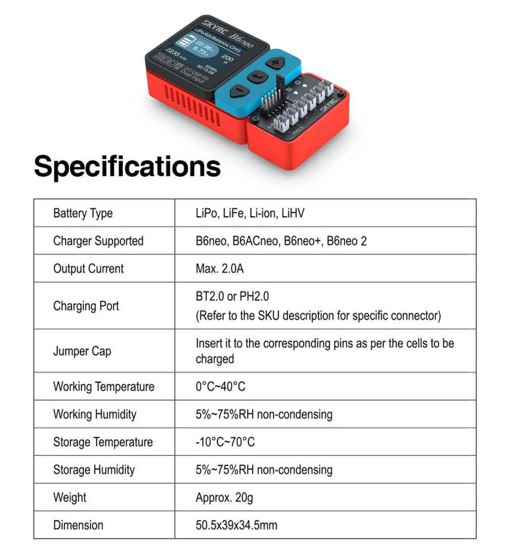 4. Supported B6neo, B6ACneo,B6neo+,B6neo 2 Charger.