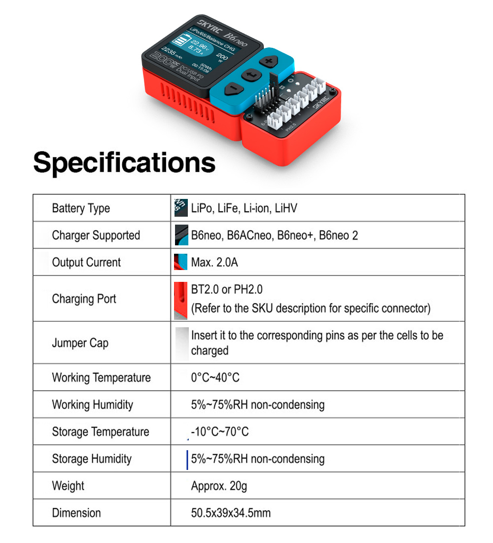 4. Supported B6neo, B6ACneo,B6neo+,B6neo 2 Charger.