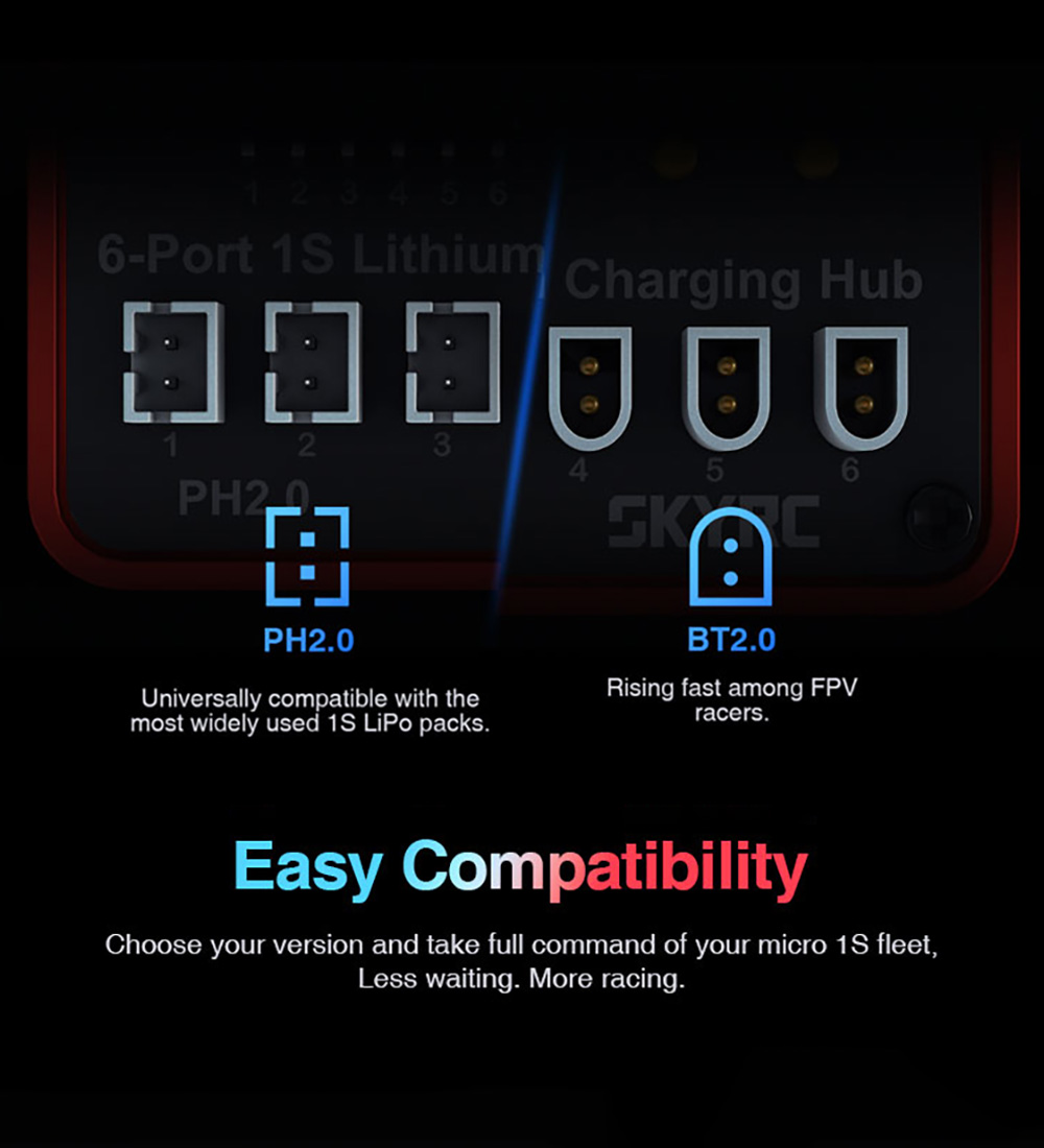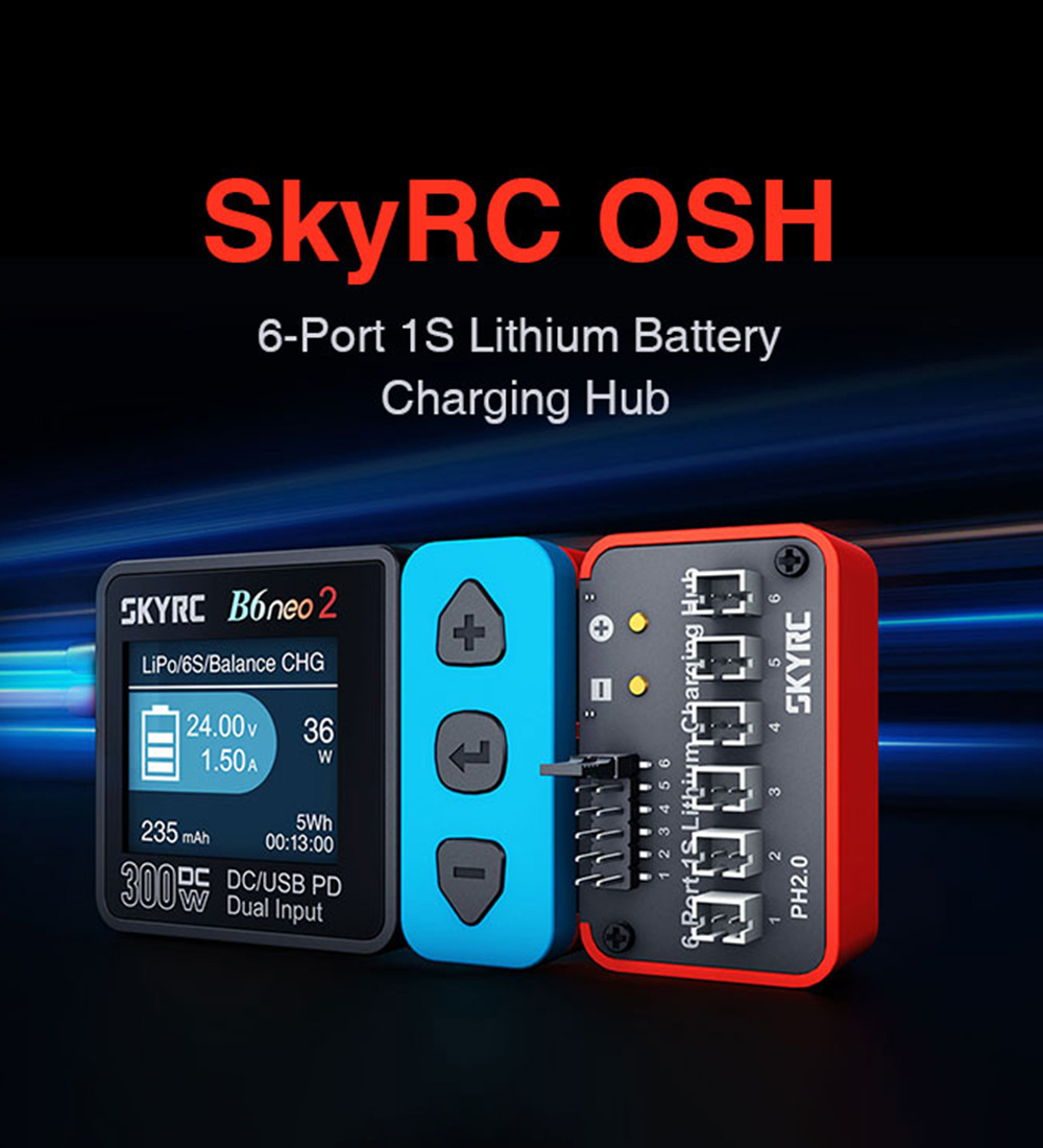 SKYRC Battery Charging Hub OSH 6-Port 1S Battery Charging Hub BT2.0/PH2.0 Optional For LiPo LiFe Li-ion LiHV Support B6neo B6ACneo B6neo+ B6neo 2 Charging
