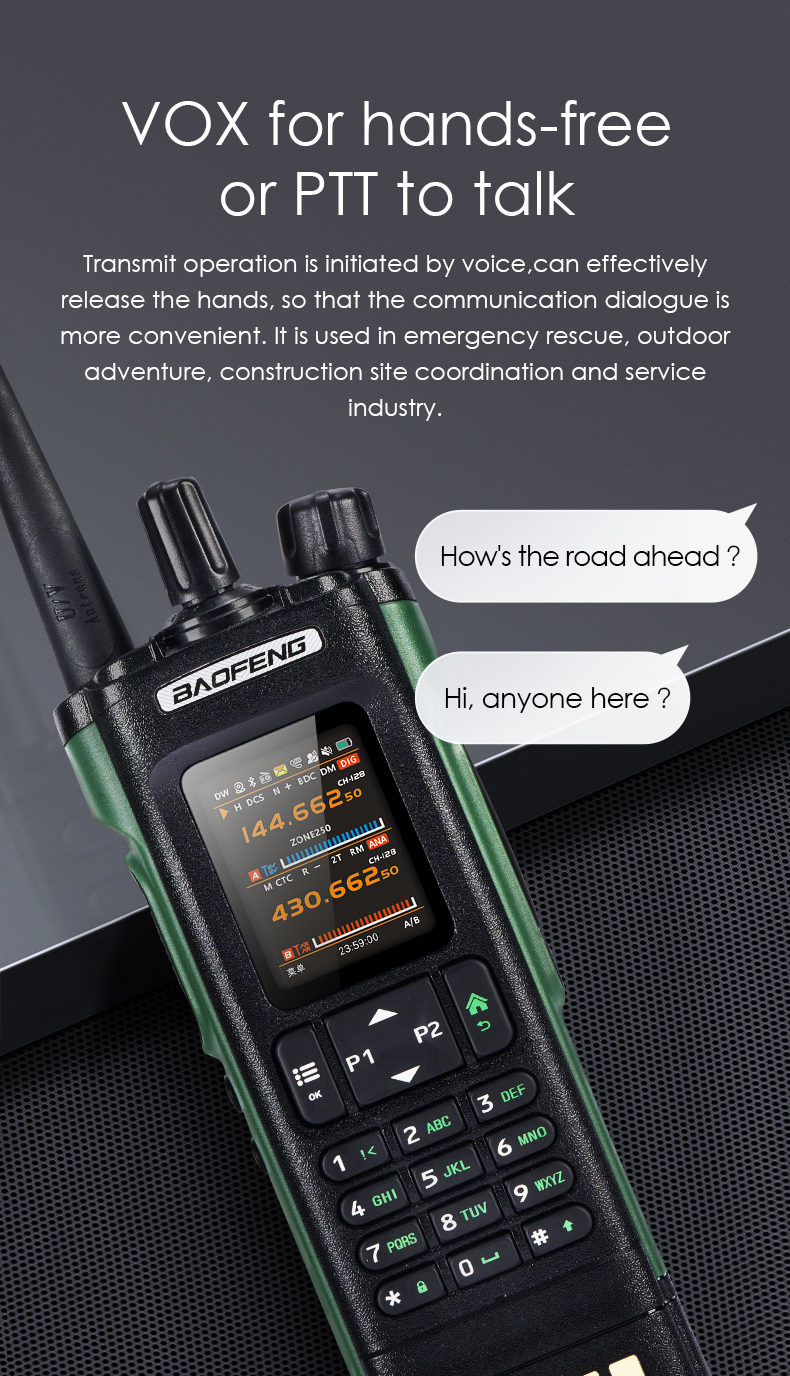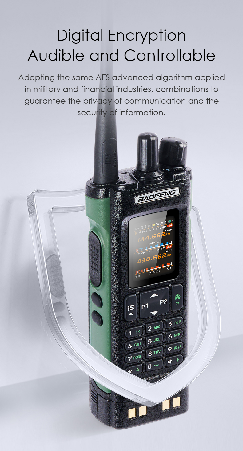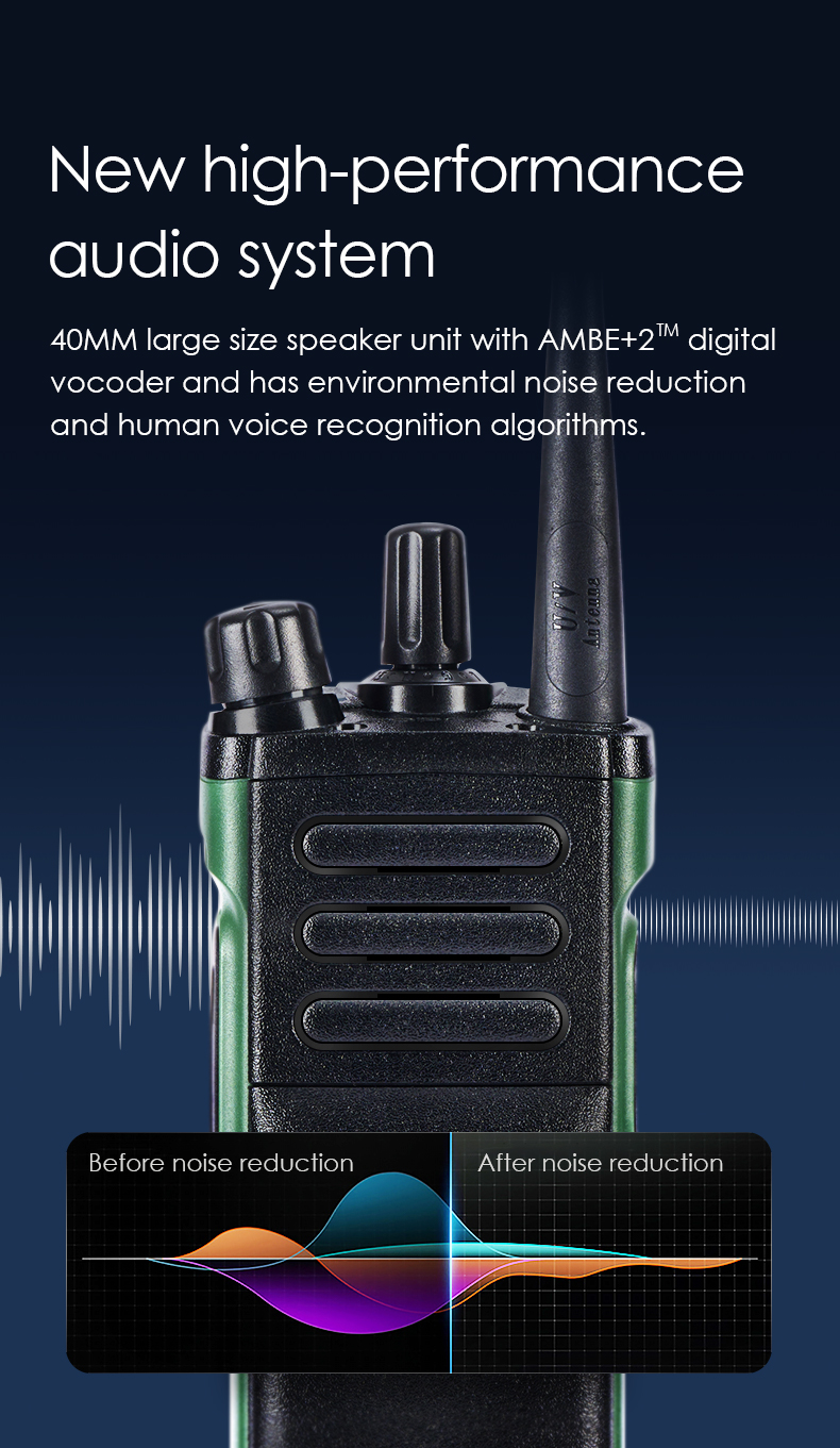 –Using AMBE+2™ voice encoder, the voice is clear and loud, without noise interference This digital walkie-talkie adopts advanced AMBE+2TM voice processing technology to achieve high sound quality