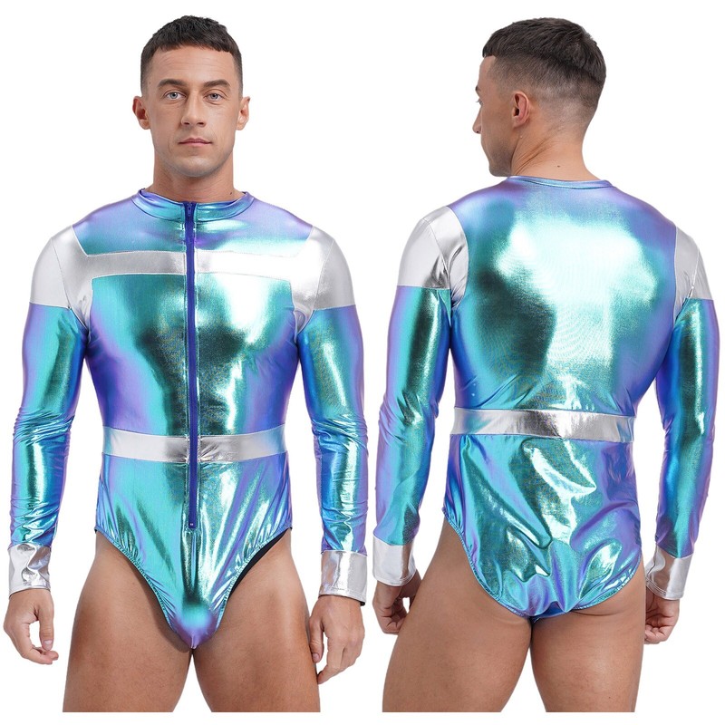 Rüschenkleid für Männer, metallisch gerafftes Gürteldesign, ärmellos, eins Schulterumfang, zeigen Sie Ihre Muskeln perfekt.