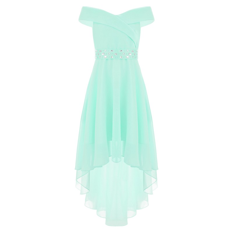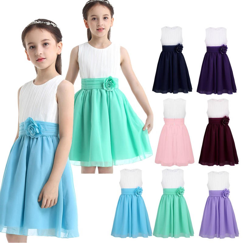DE iEFiEL Elegant Mädchen Chiffon Blumenmädchenkleider Schulterfrei Partykleid