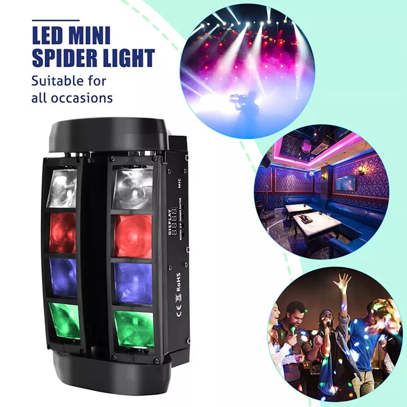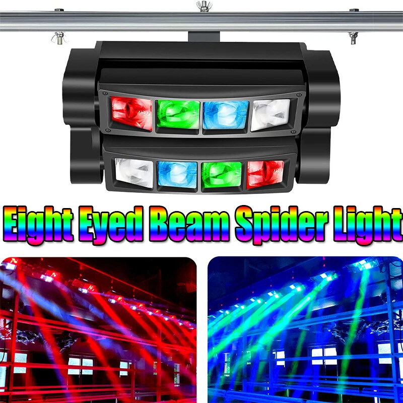LARGE RANGE SPIDER BEAM: The axis angle of moving lights can be 60 degrees to 150 degrees, 8 monochrome LED beams move independently, with the stage smoke/fog effect, the beams effect is more prominent.