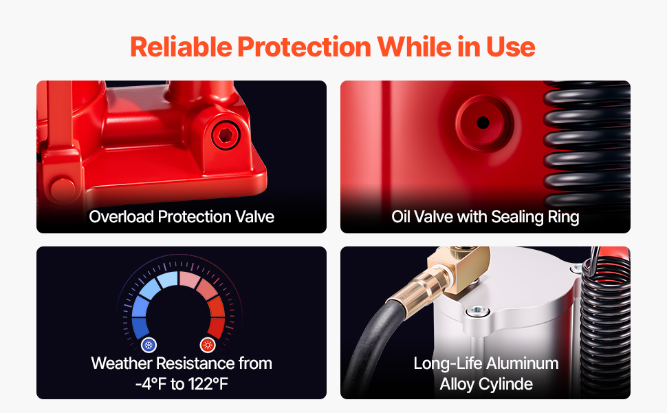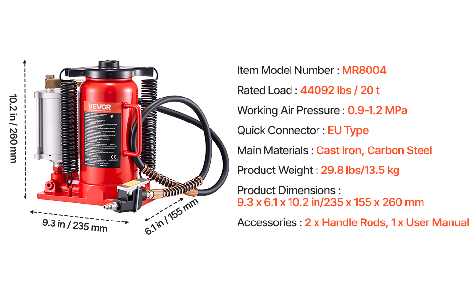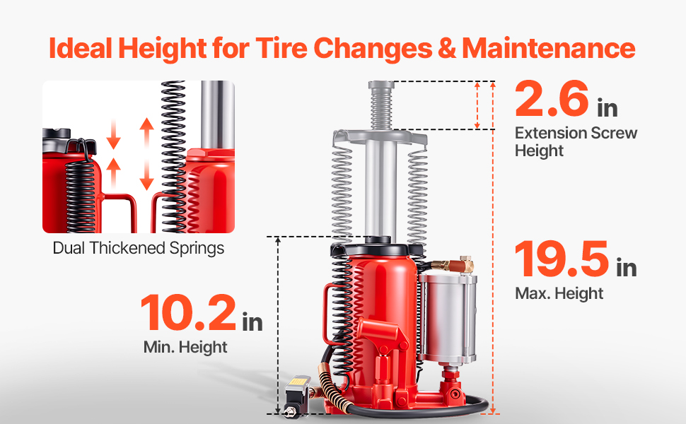 Con un intervallo di sollevamento da 260 a 495 mm, questo cric è adatto alla maggior parte dei veicoli. Le molle di ritorno garantiscono un ritorno fluido del pistone. Prima dell'acquisto, verificare l'altezza da terra del veicolo per garantire la corretta installazione e l'altezza di sollevamento.