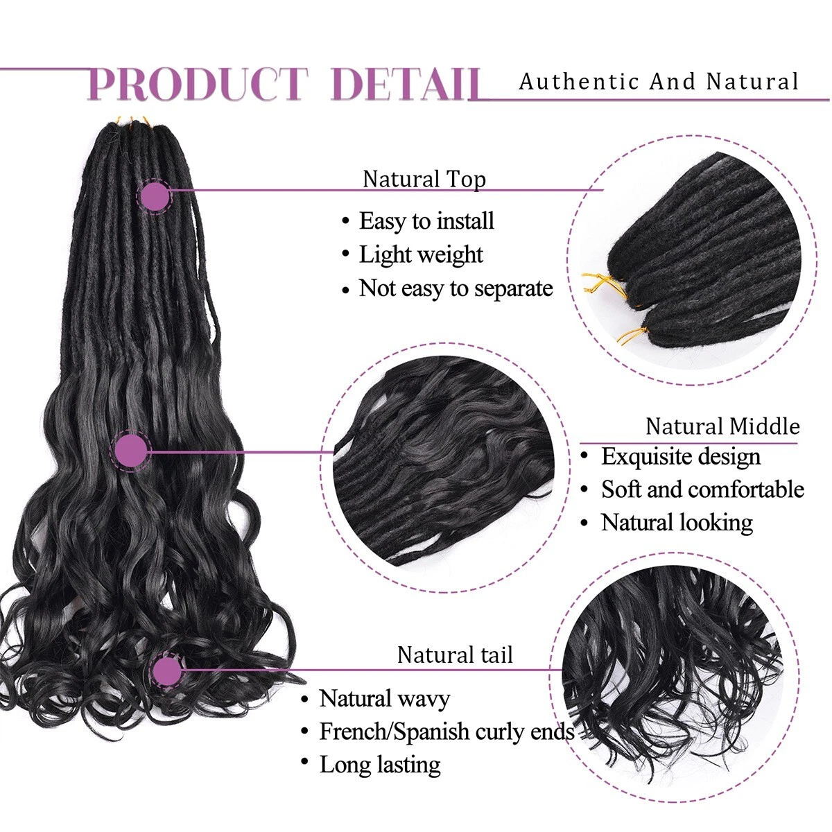 65 cm/ 26 Inch Ombre French Curls Dreadlocks Extensions Loose Wave Curly Double Ended Dreadlocks DE Dreads French Curly Dreads Soft Dreads Locs