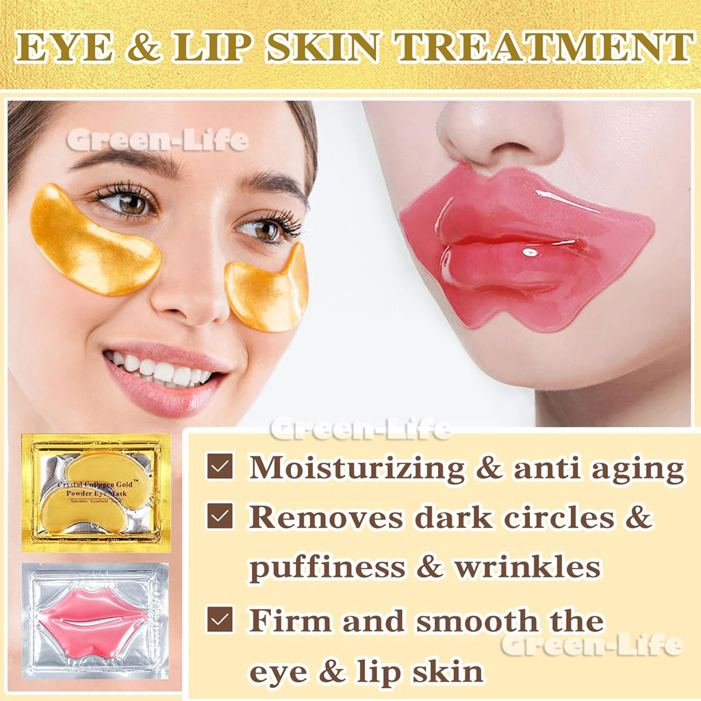 Key Ingredients: Under eye mask patches & lip mask sheet, rich of Collagen, Hyaluronic acid, Glycerin, Vitamin C, Vitamin E. Calm and soothe, reduce dark circles and puffiness, eye bags & lip lines. Keeping your lips and eyes skin moisturized, soft, fresh and elastic