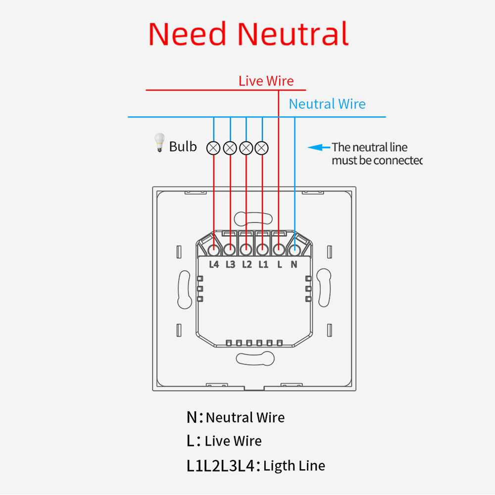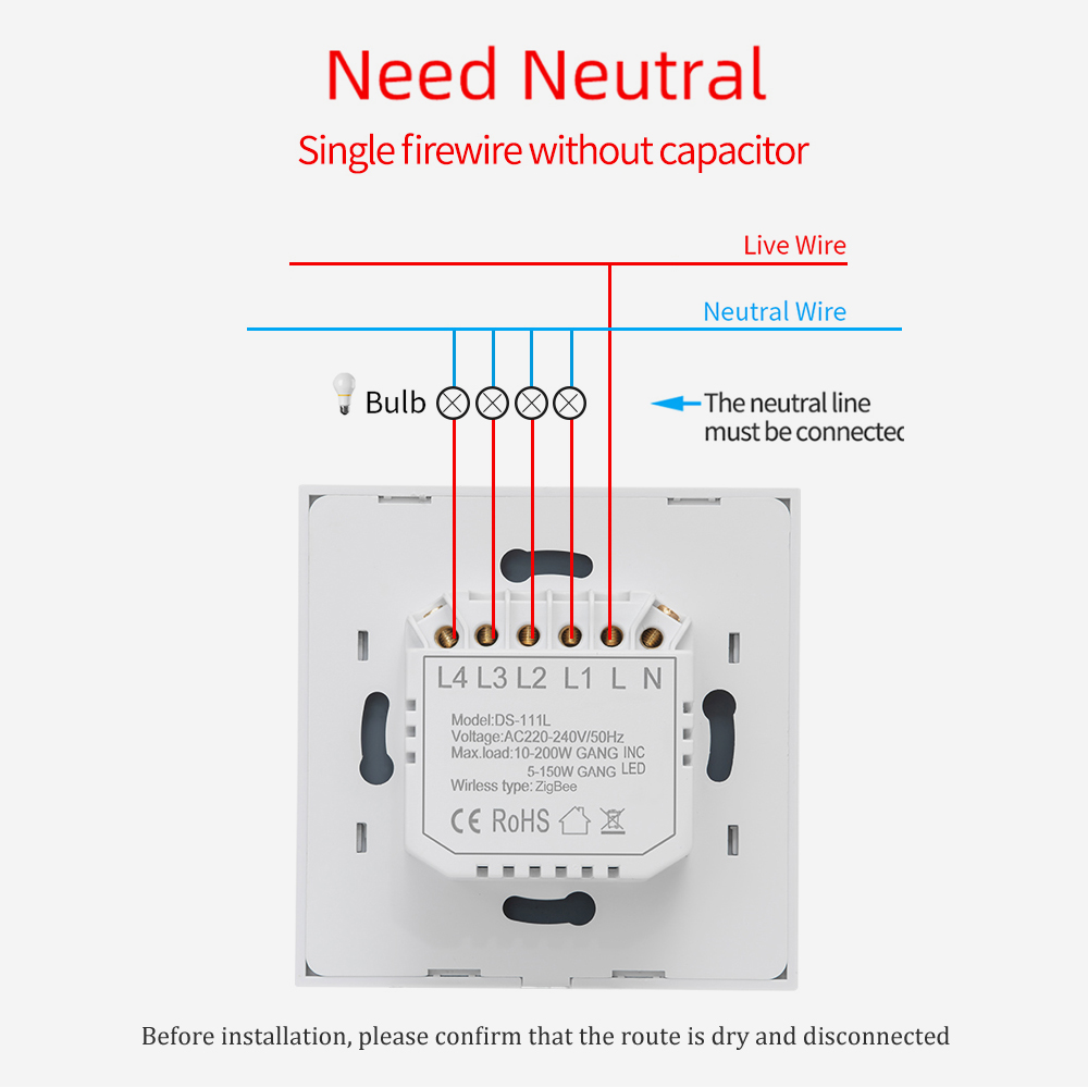 Note: Neutral wire is required in your switch boxes to operate correctly;only supports 2.4G network