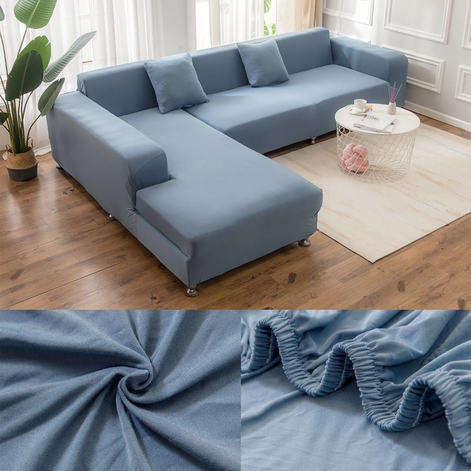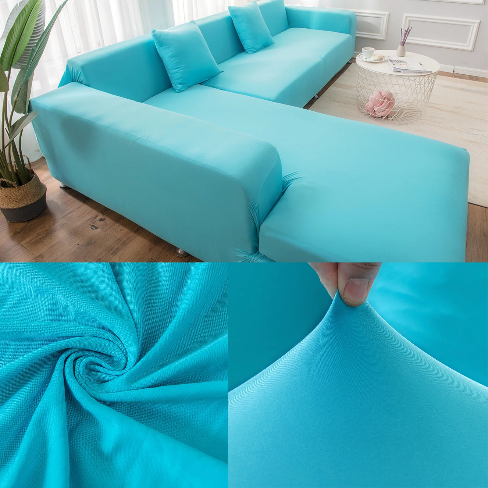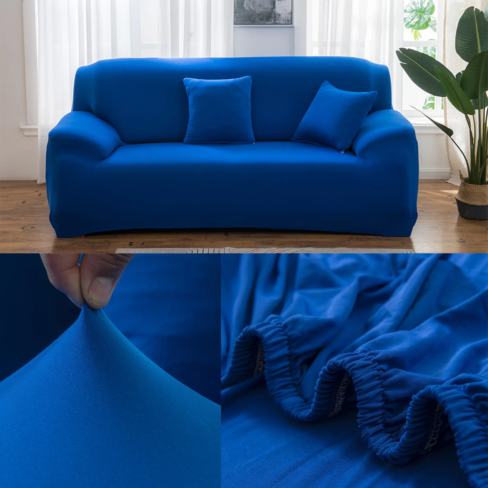 2.put the cover on the sofa and then slowly pull the slipover to the bottom.