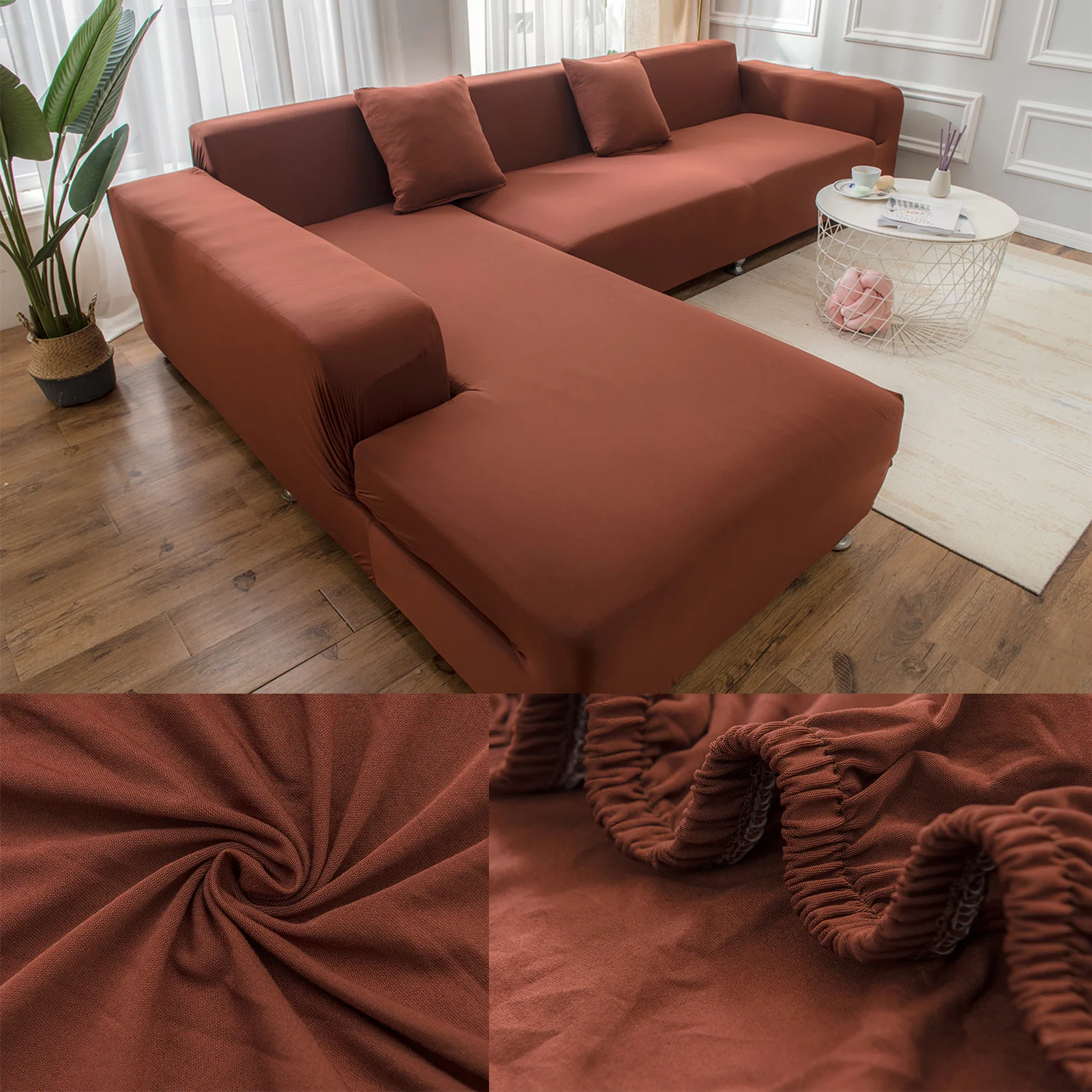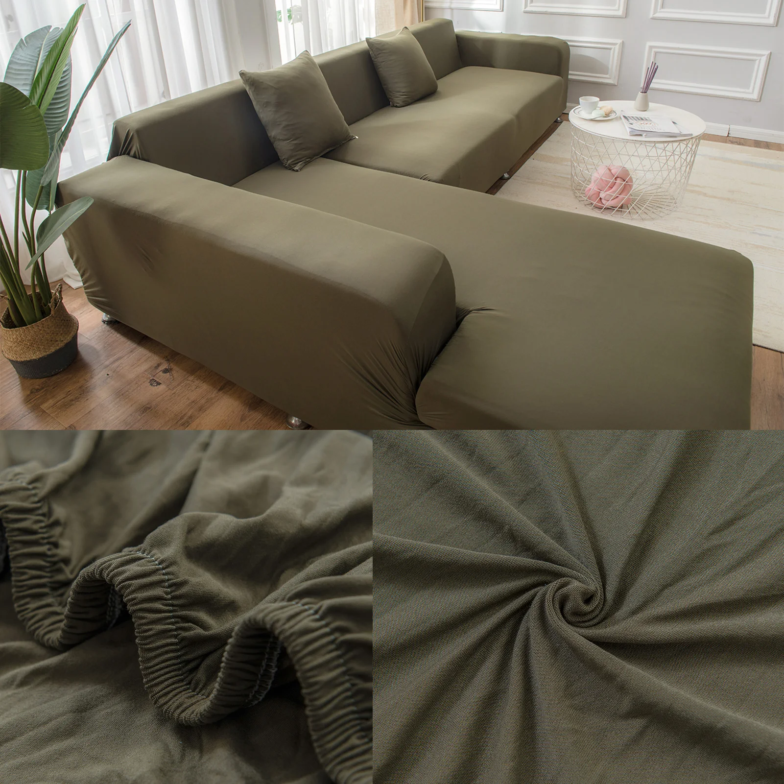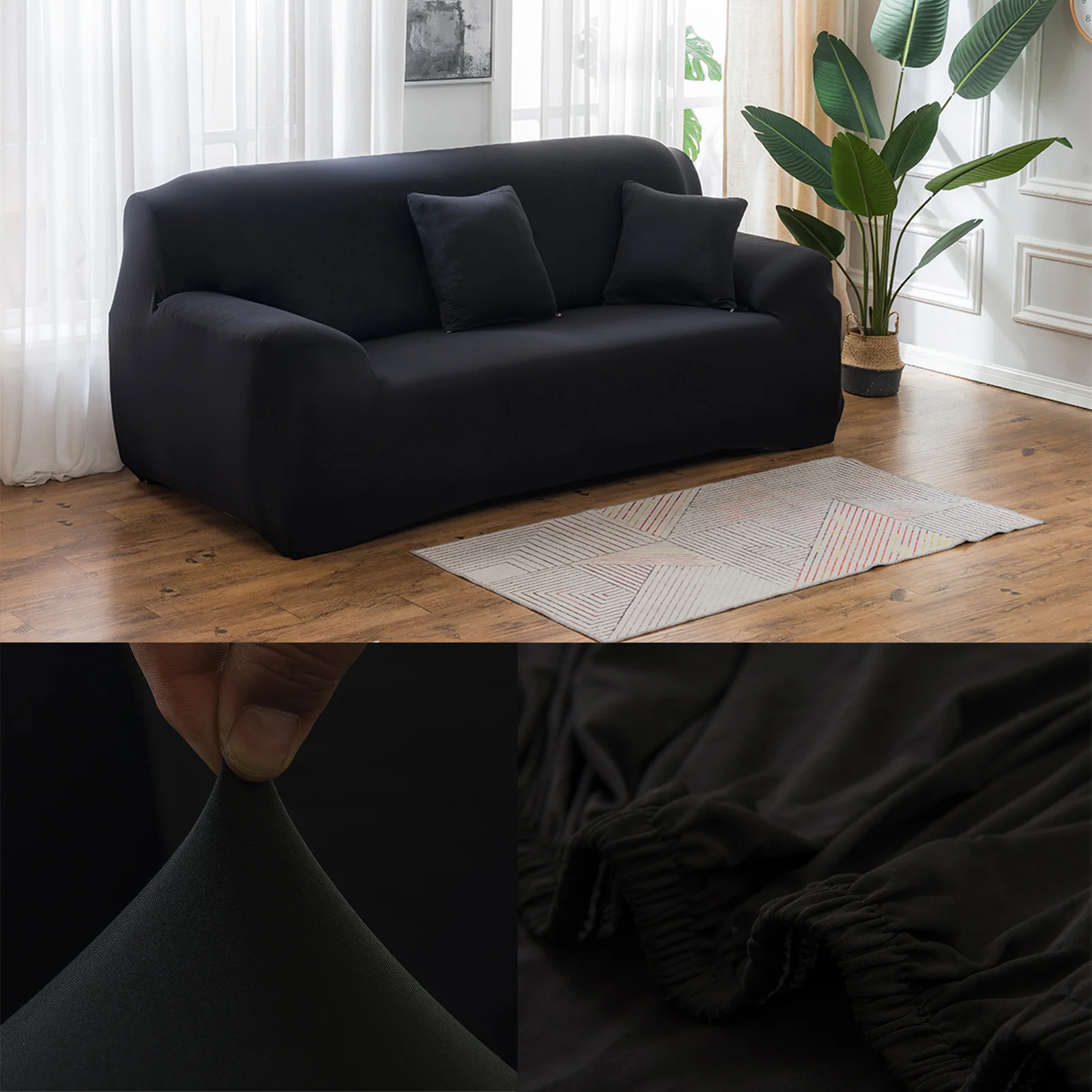 2.put the cover on the sofa and then slowly pull the slipover to the bottom.