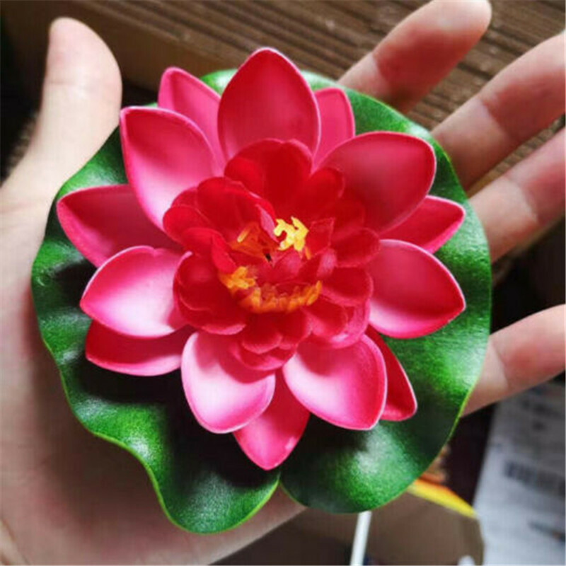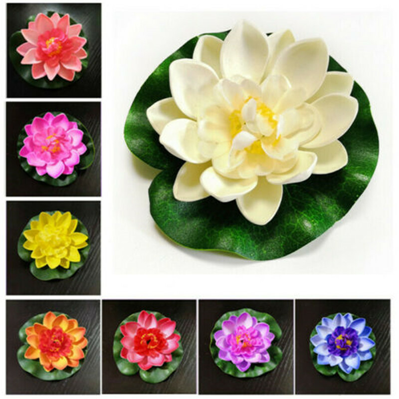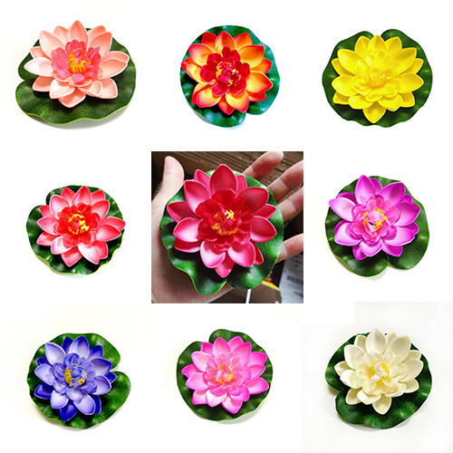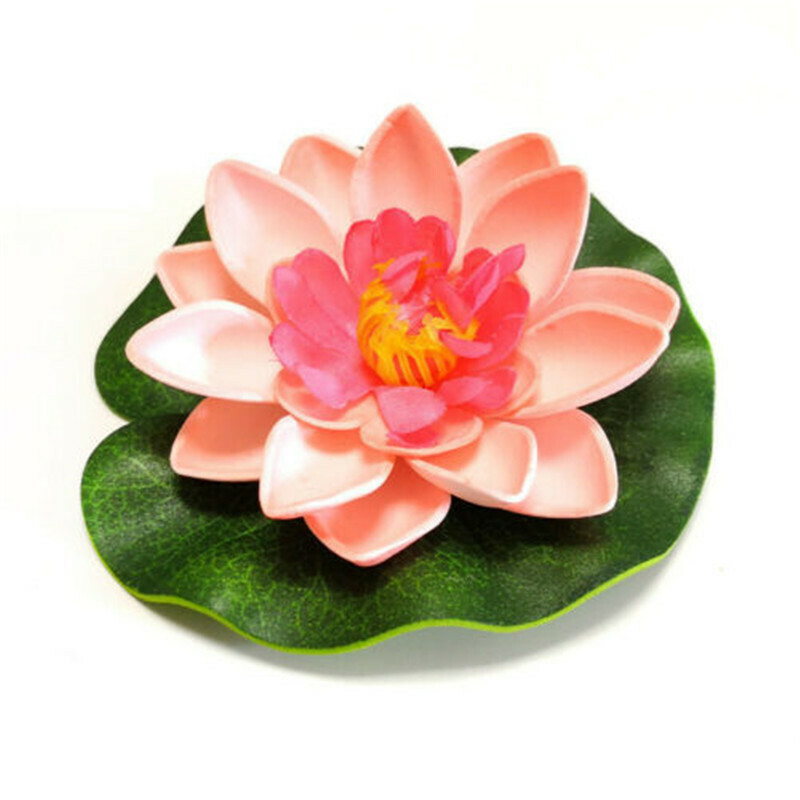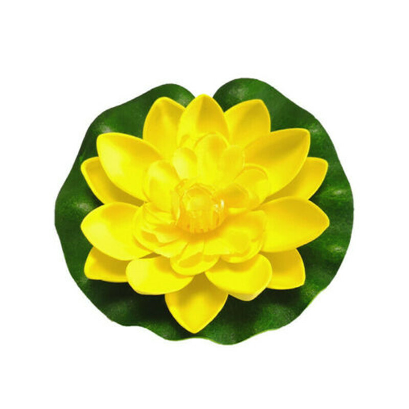 The water lilies in plastic material is designed to float on ponds or swimming pools. Leaves are deep green with embossed shape and veining detail. A great decoration for your home.