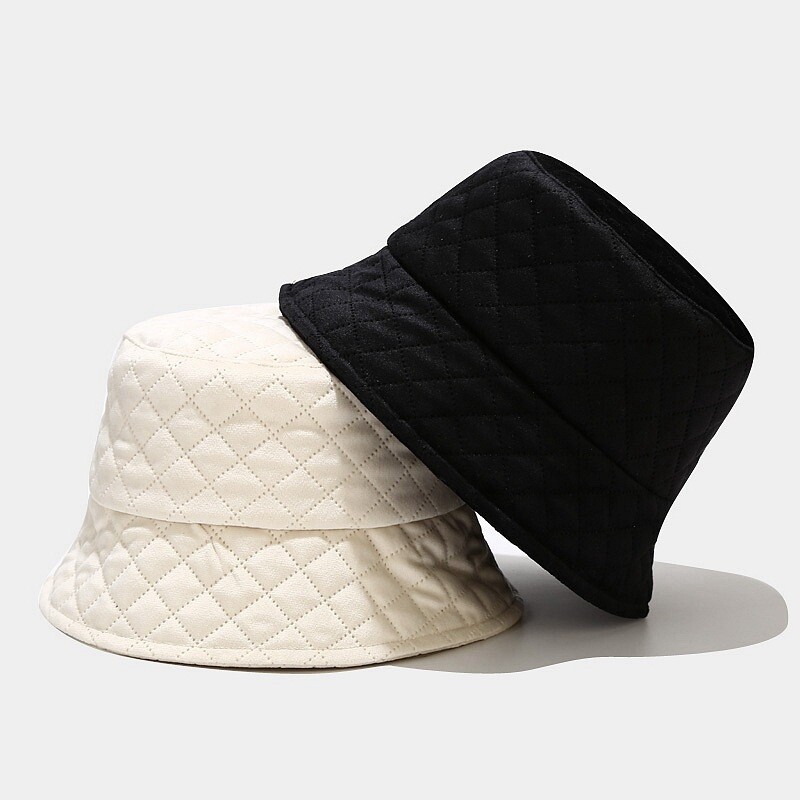 Autumn and winter new cotton plaid fisherman's hat outdoor sunshade warm flat top basin hat tourist fisherman's hat