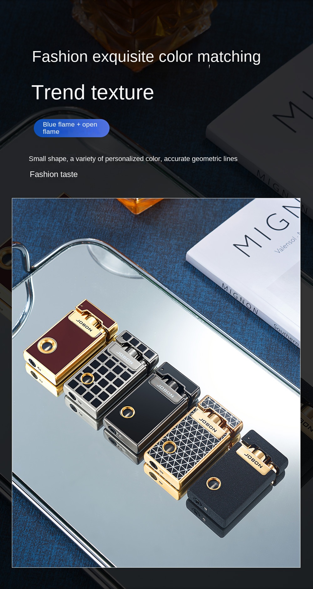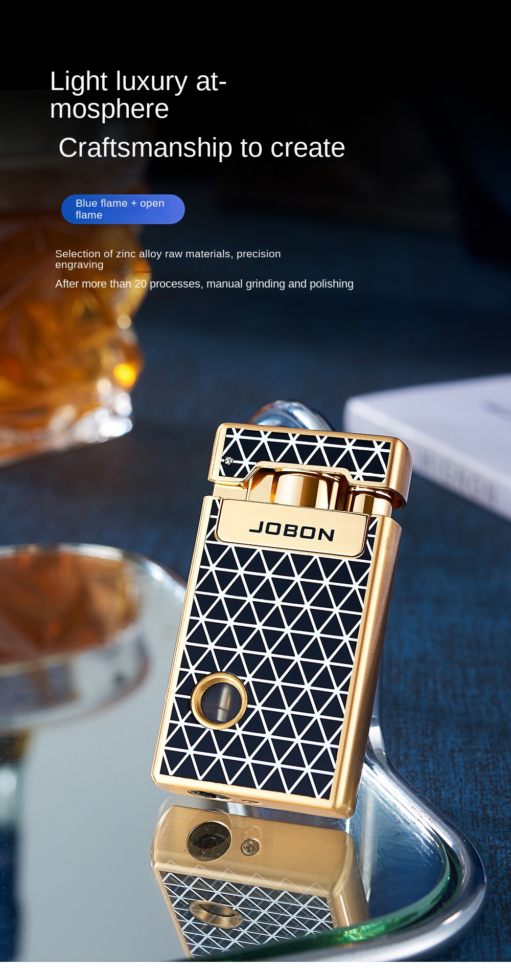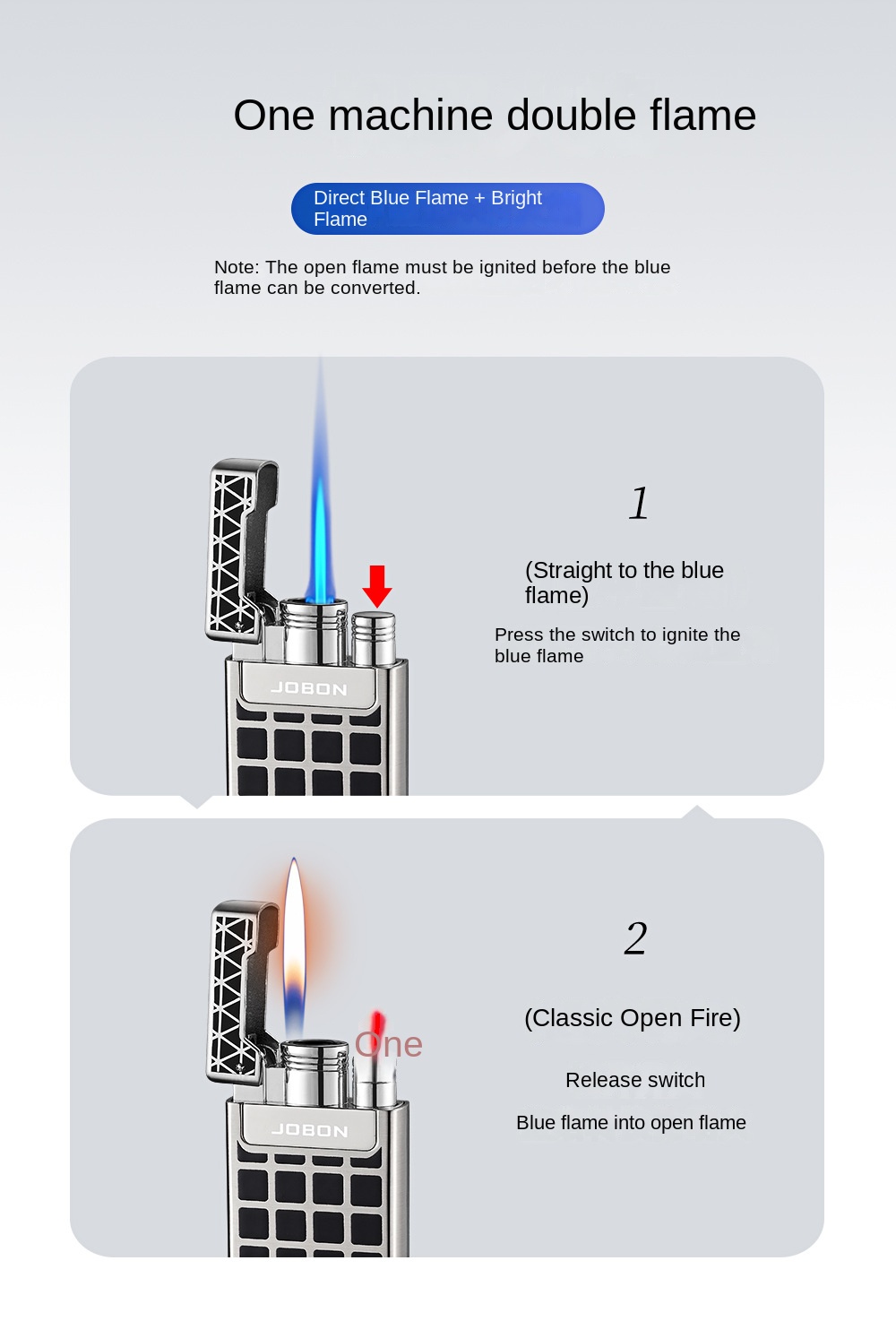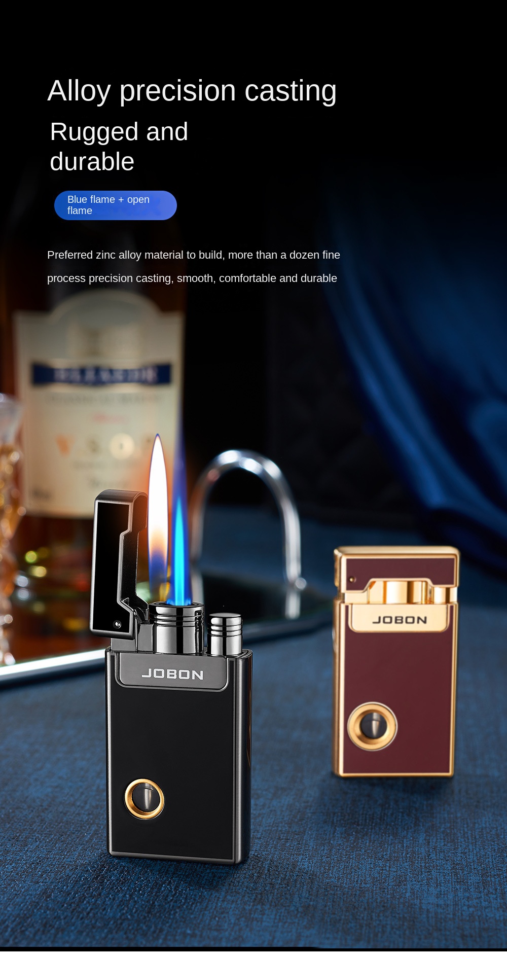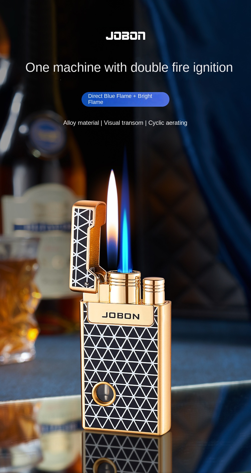 Jobon Dual Jet Torch Cigar Cigarette Lighter Refillable Blue Flames Metal Gifts