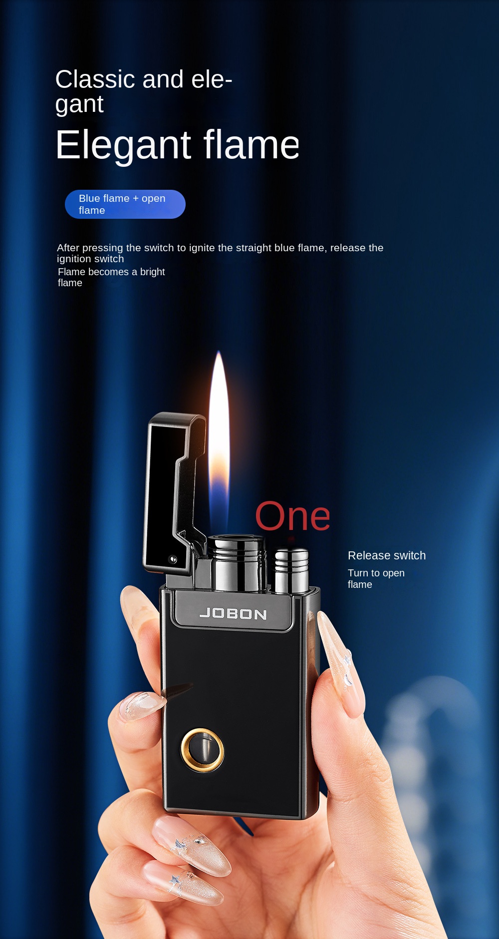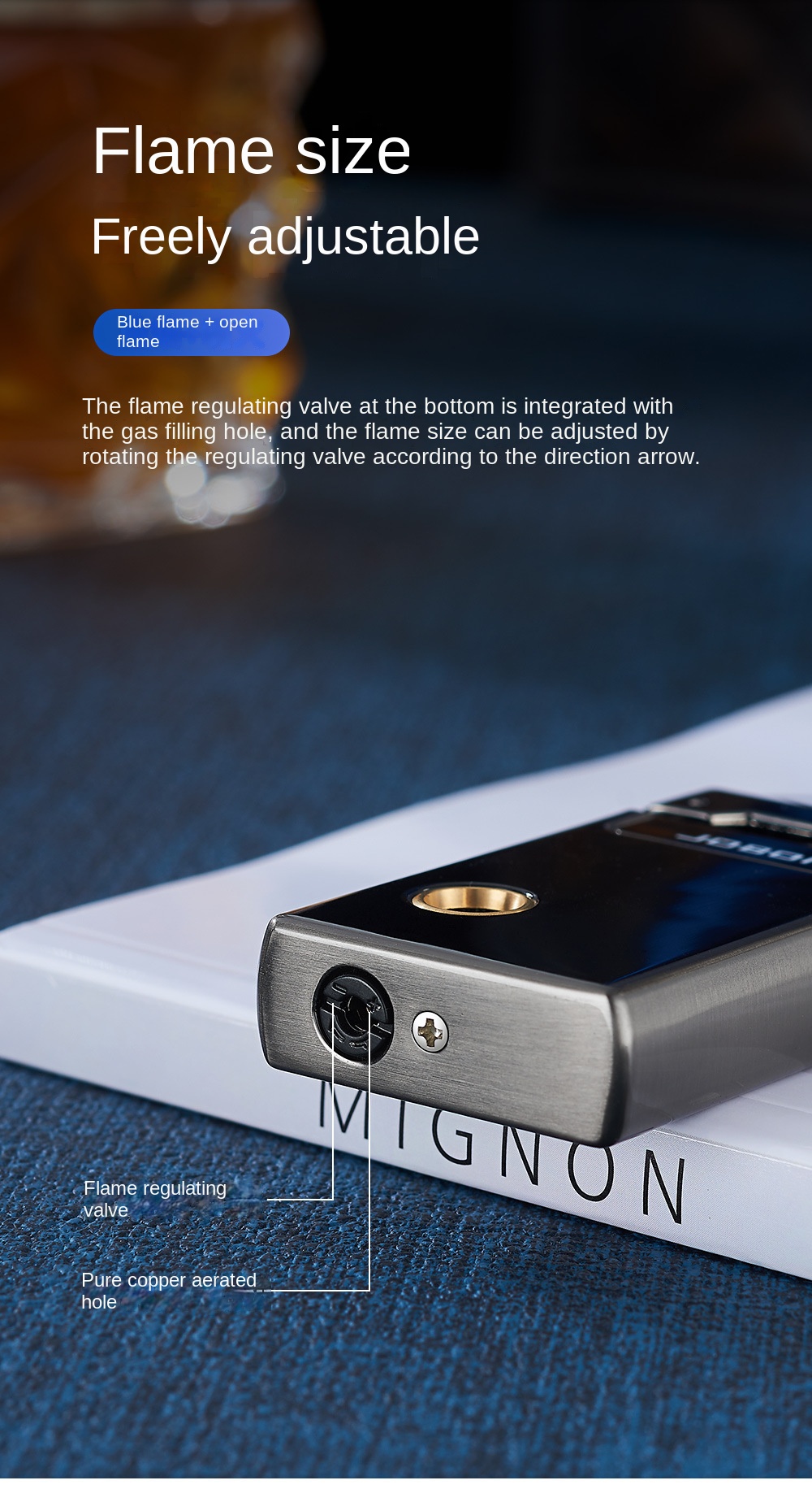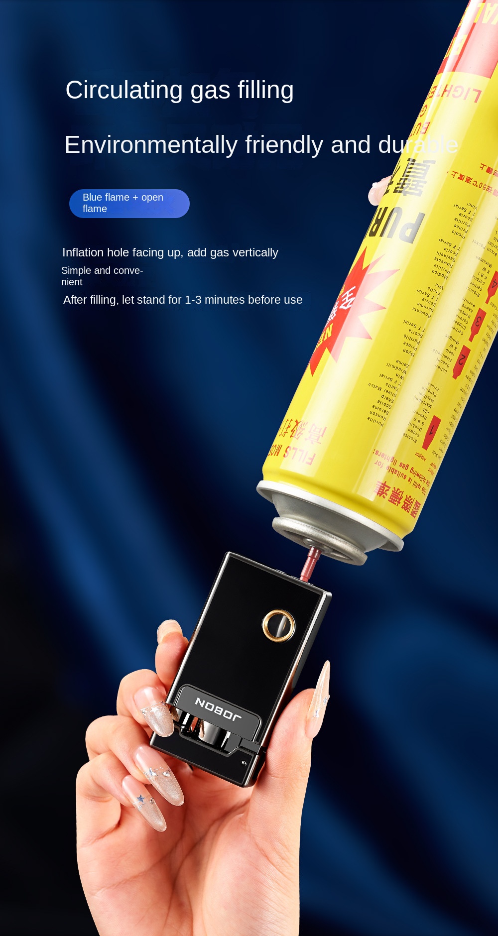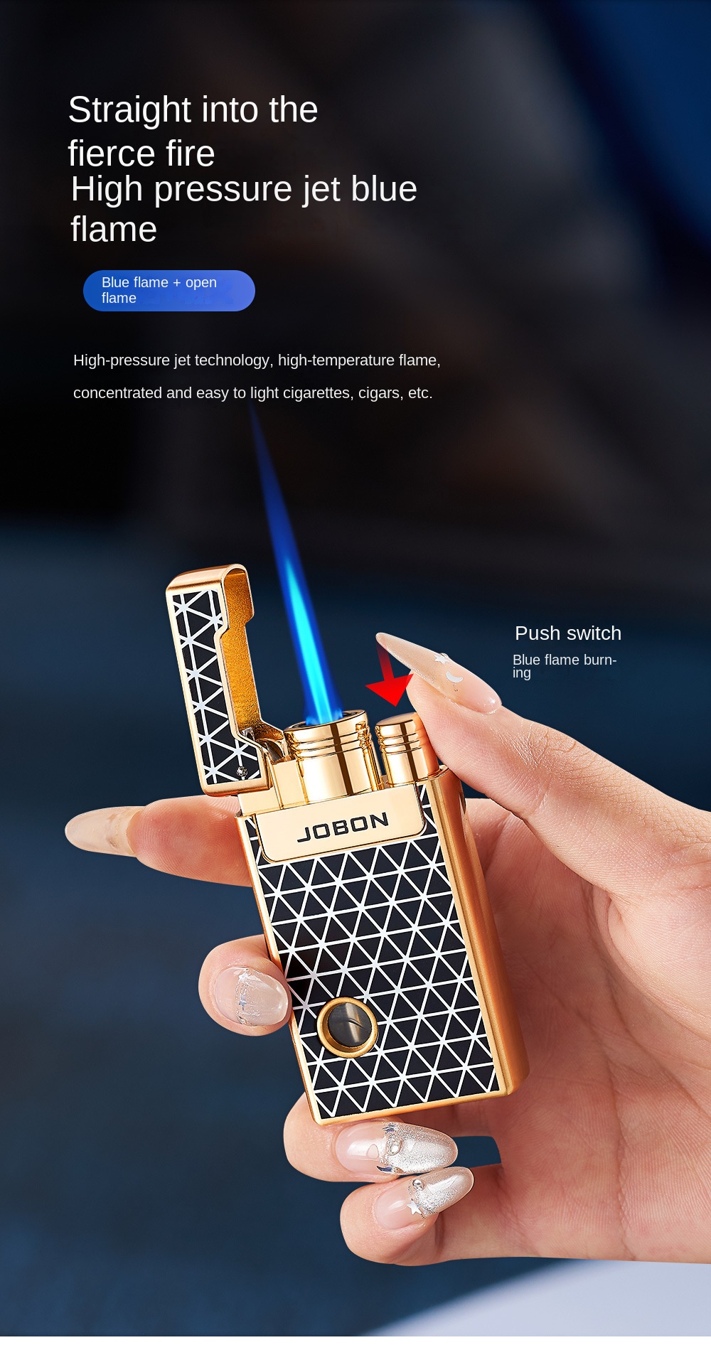 Jobon Windproof Jet Blue Flame Adjustable Torch Refillable Kitchen Lighter Gifts