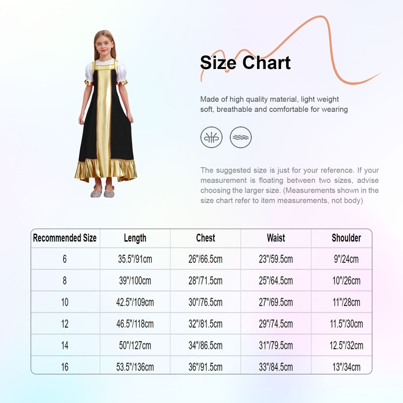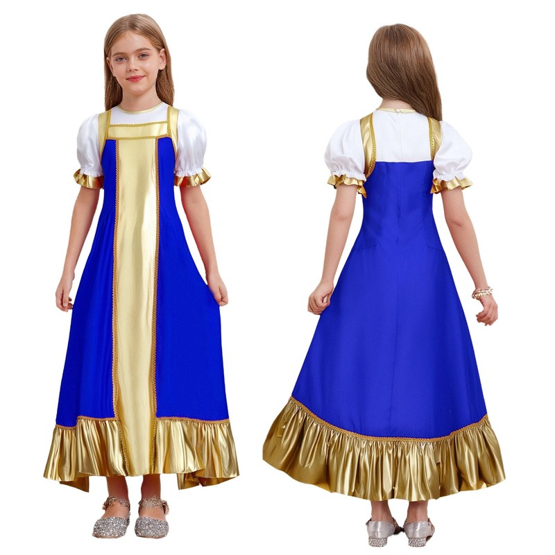 Girls Halloween Russian Cosplay Costume Dress Color Block Metallic Long Dresses