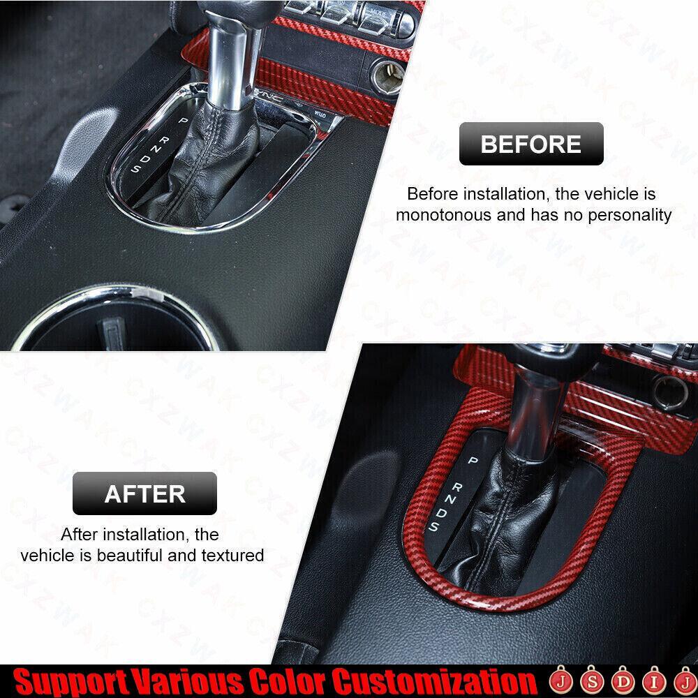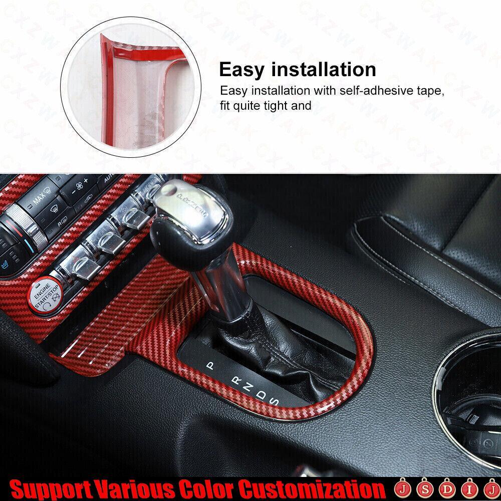 For Ford Mustang 2015-23 Red Carbon Fiber Central Console Gear Shift Panel Trim
