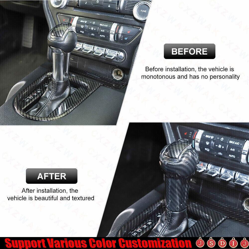 For Ford Mustang 15-23 ABS Carbon Fiber Central Console Gear Shift Knob Trim 3X