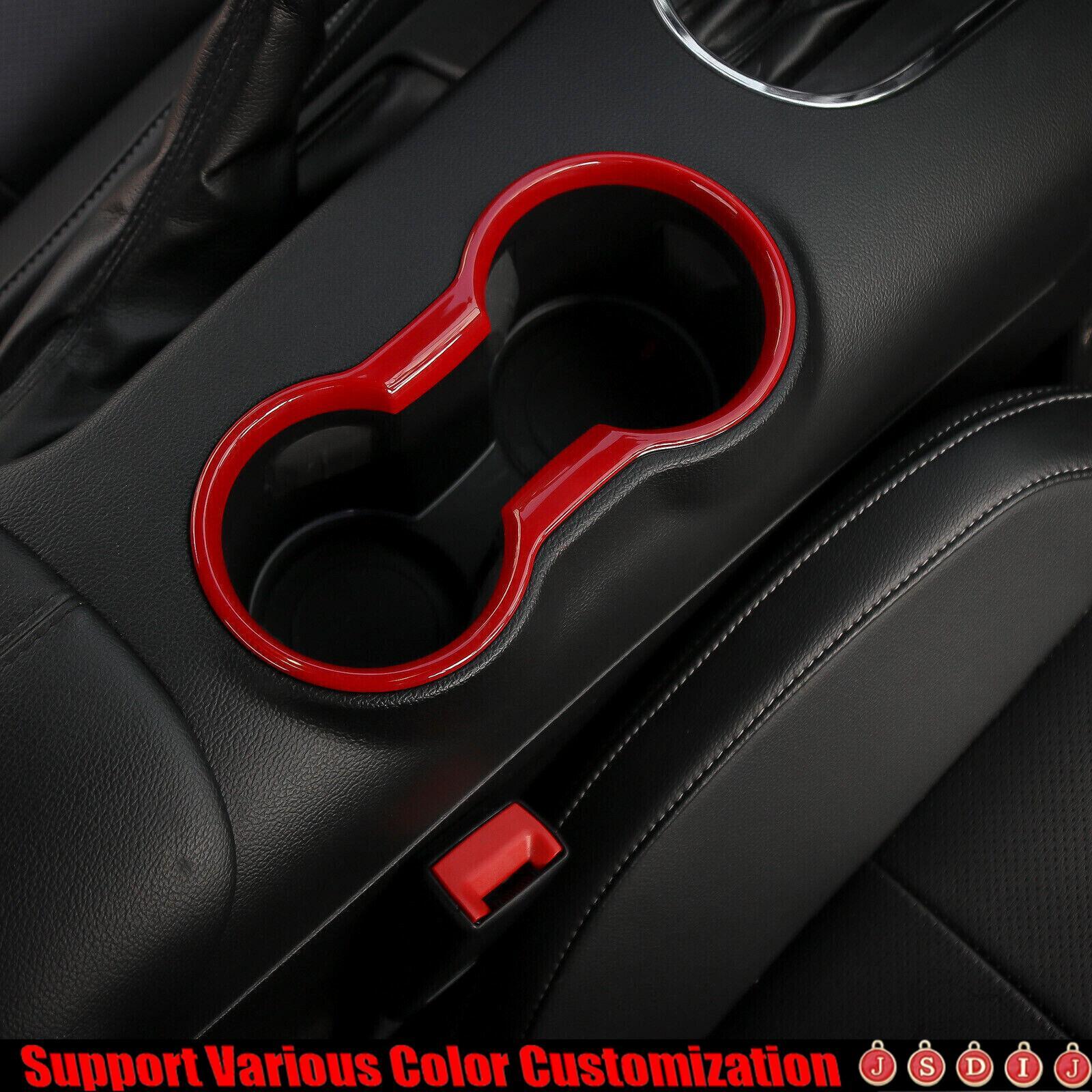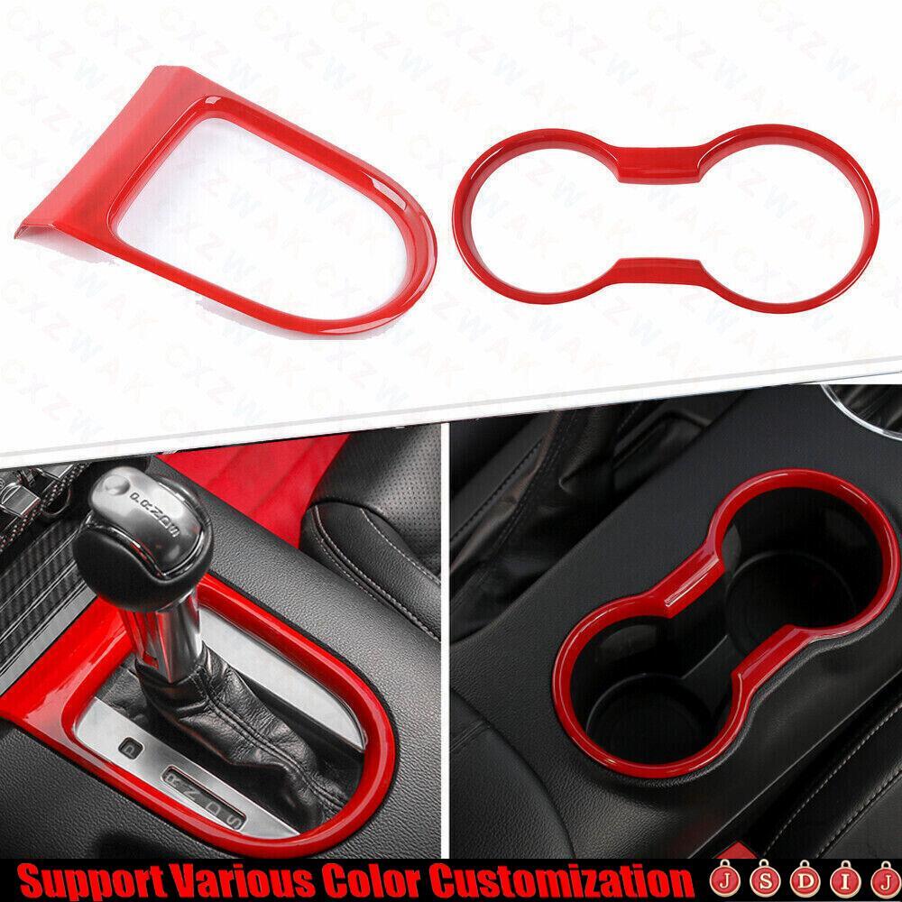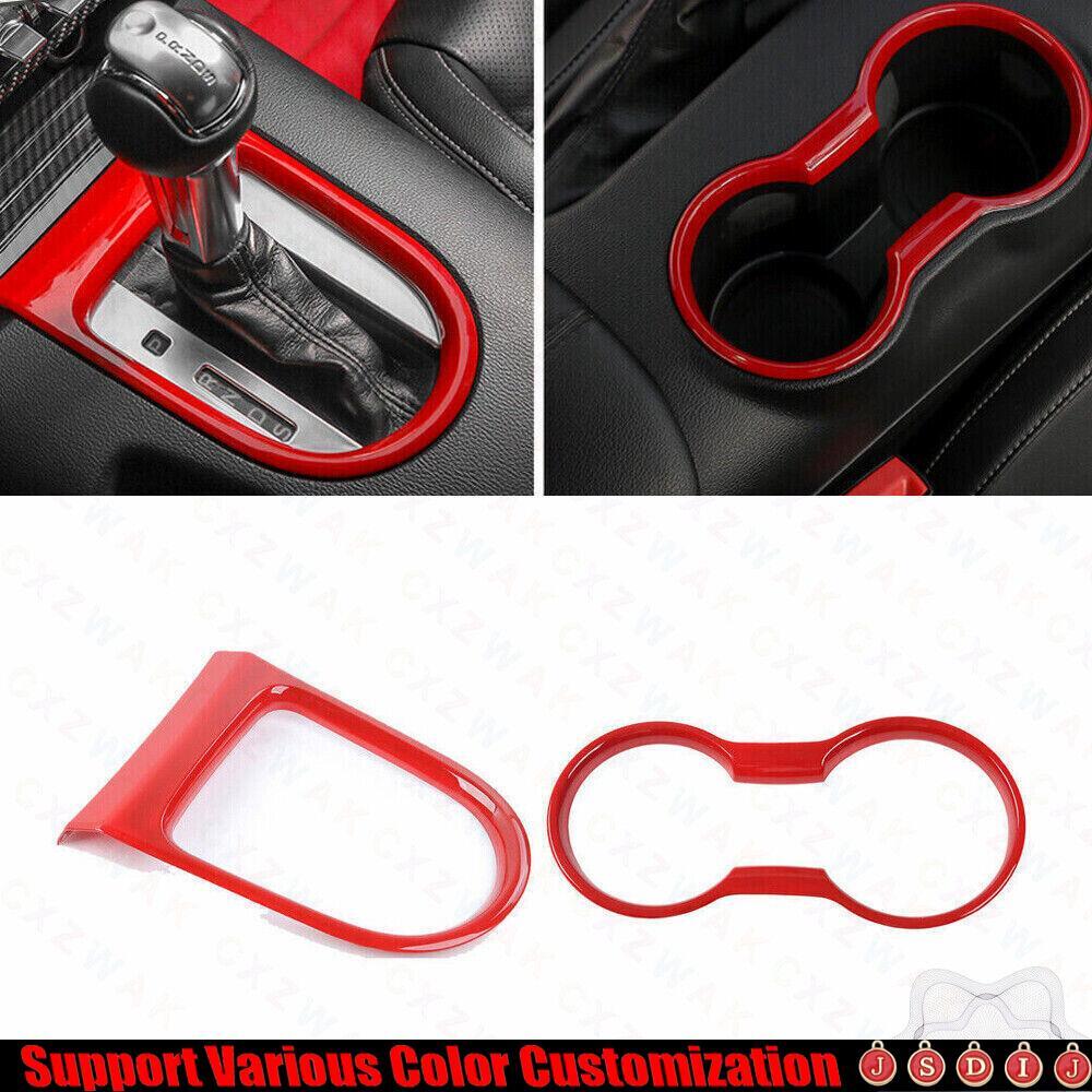 For Ford Mustang 2015-2023 Bright Red Console Shift & Water Cup Cover Trim 2PCS