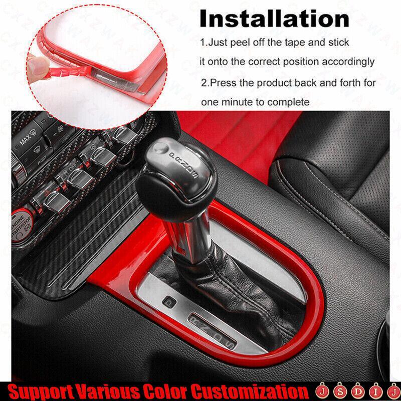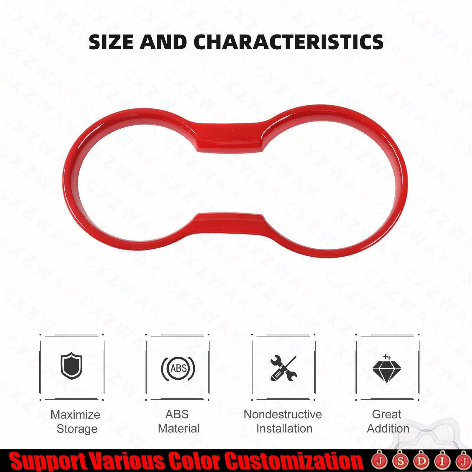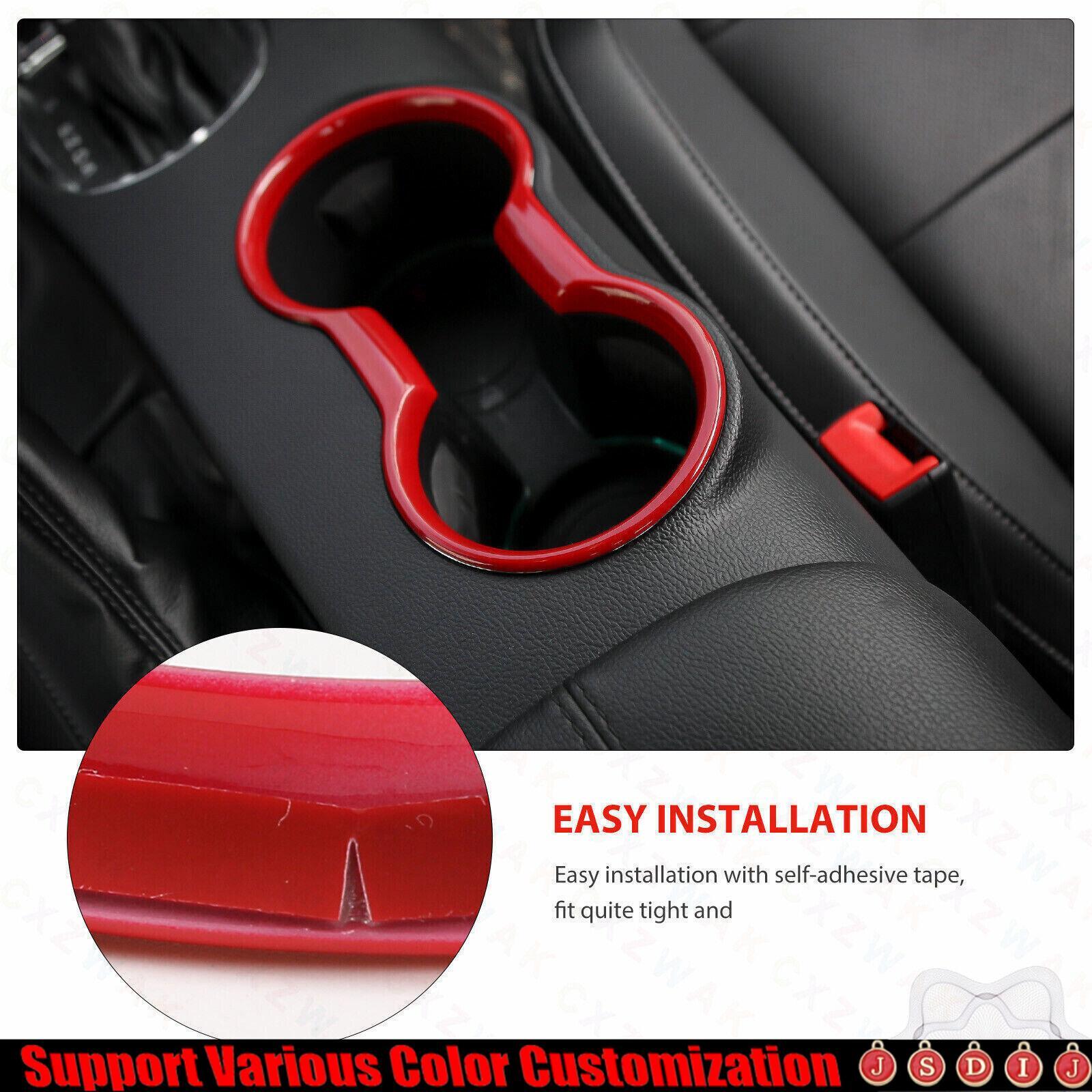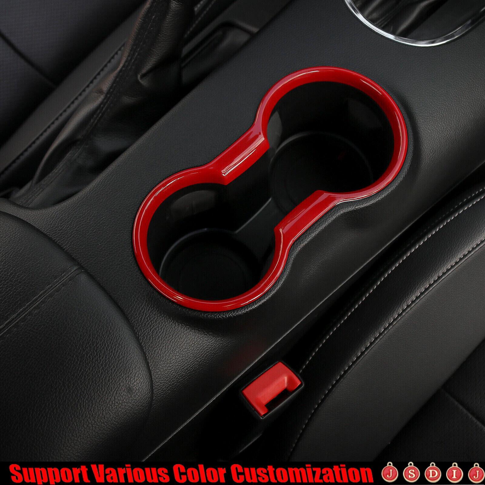 For Ford Mustang 2015-2023 Bright Red Console Shift & Water Cup Cover Trim 2PCS