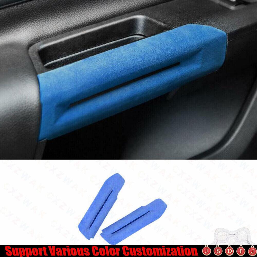Fit For Ford Mustang 2015-2023 Blue Suede Car Inner Door Handle Armrest Trim 2*