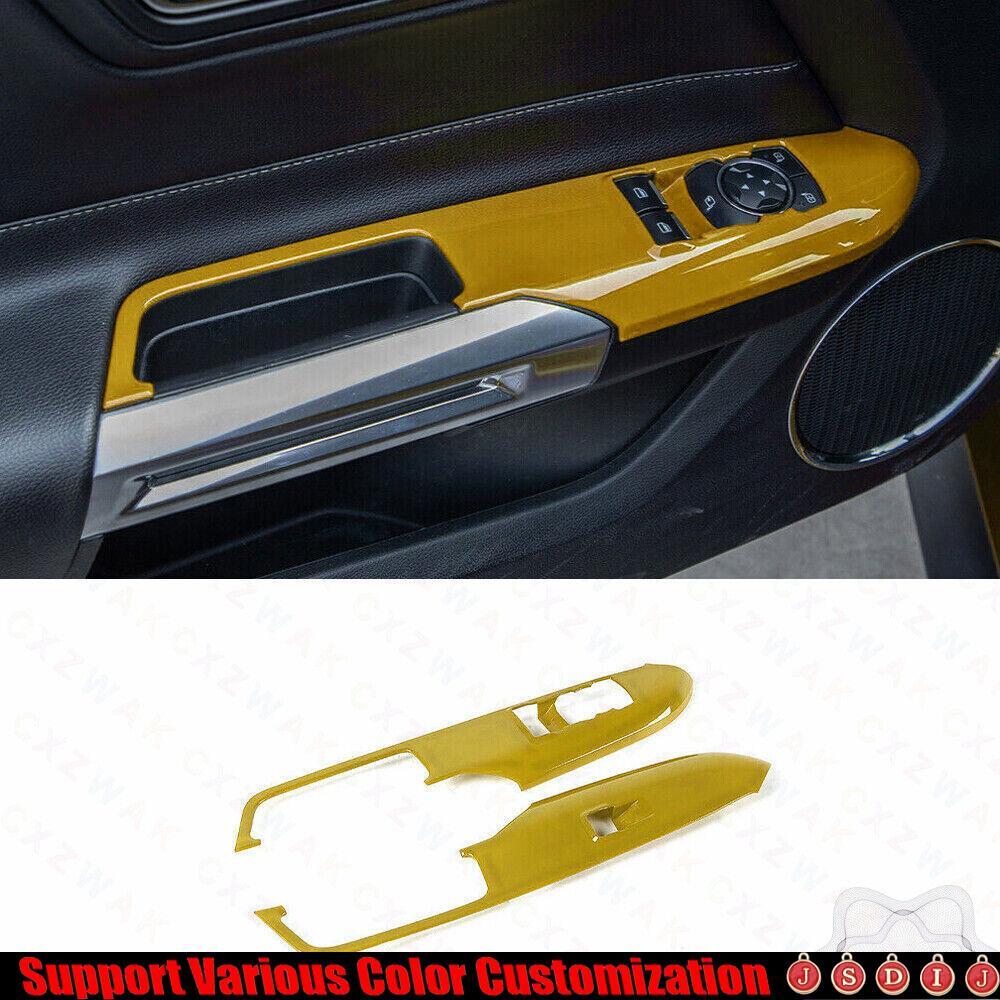 For Ford Mustang 2015-23 GL Bright Yellow Window Lift Panel Switch Cover Trim 2*