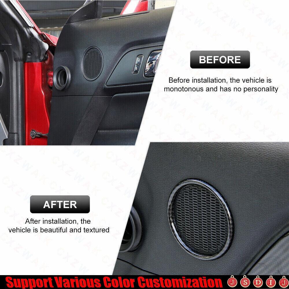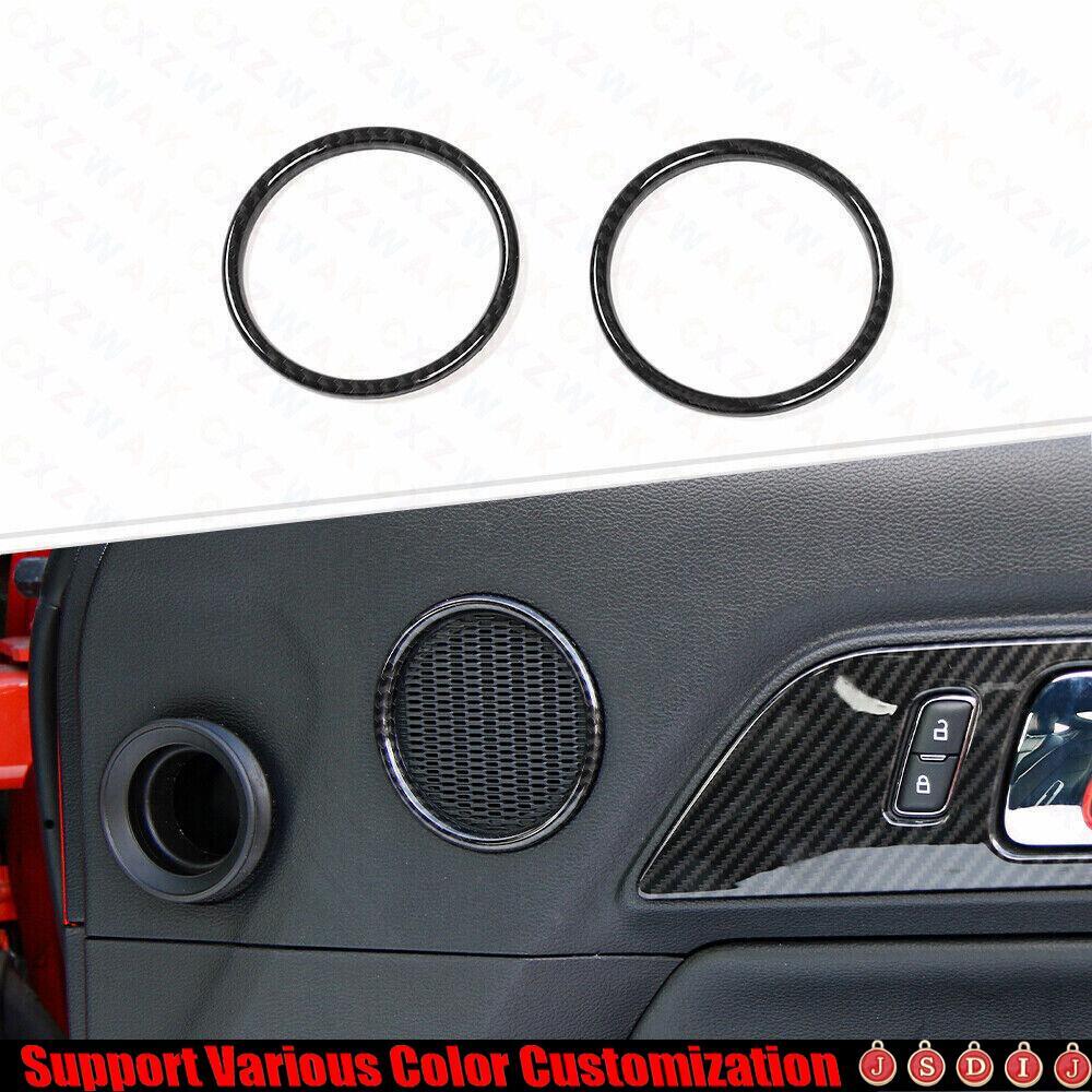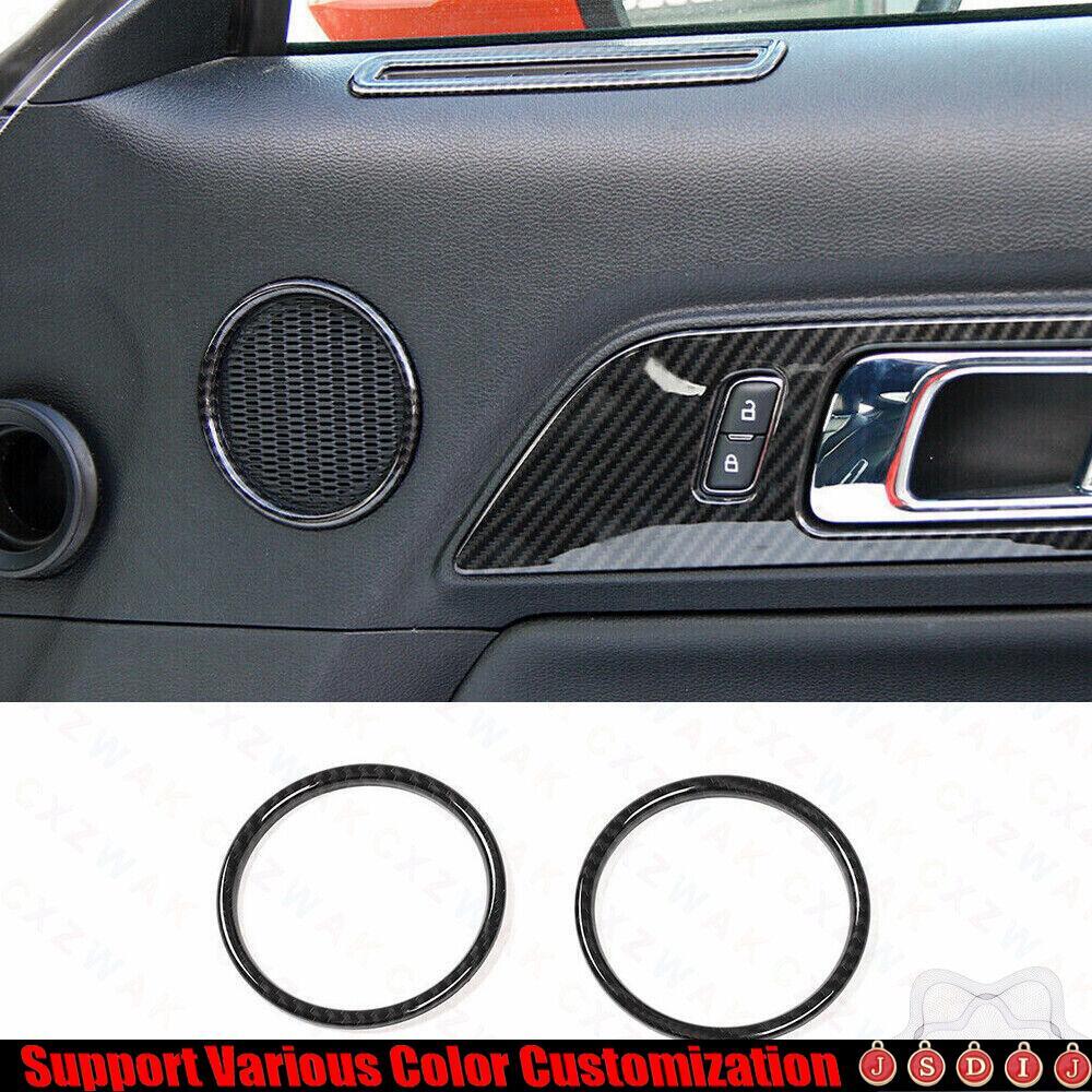 For Ford Mustang 2015-23 ABS Carbon Fiber Inner Door Speaker Ring Horn Trim 2X