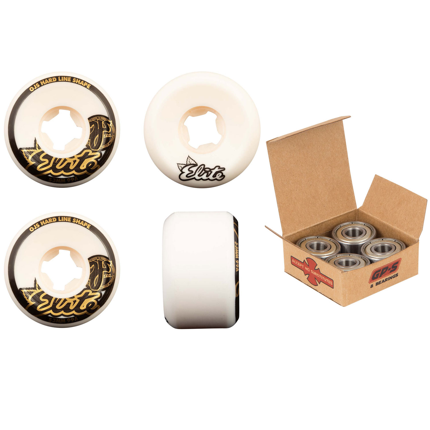 OJ Skateboard Wheels and Independent Bearings Combo 53mm Elite Hardline 99A