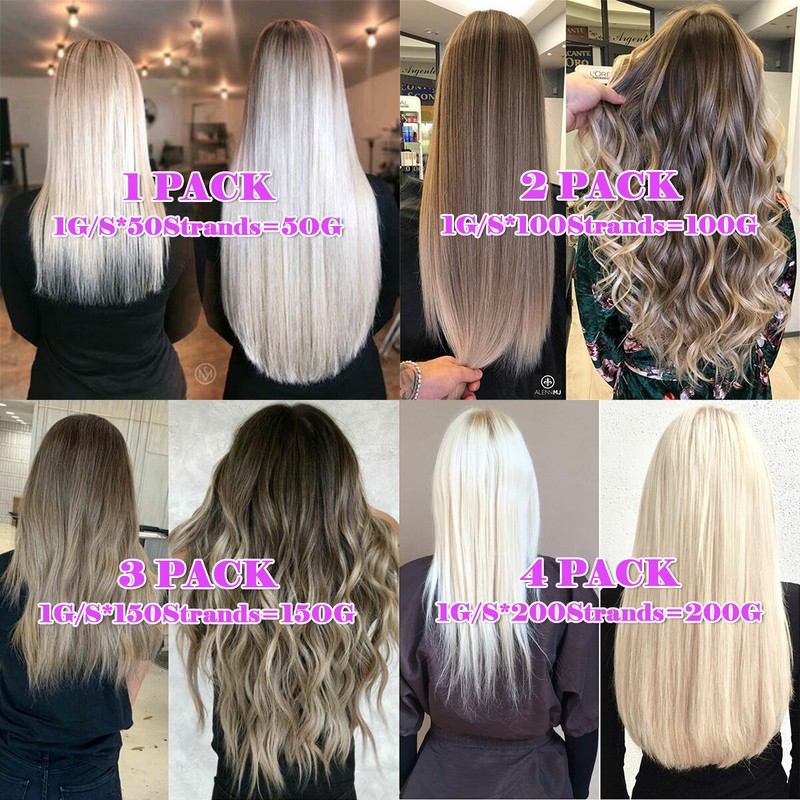 If you are planning to add highlight, 1 pack is enough. If you have fine hair and want to add slight volumn and length, buy 2 packs. If you have thin/short hair and want to have thick and long hair look, buy 3-4 packs please. Kindly note, all lendth hair with 50g, if you choose the longer size, the hair would be thinner, so you would need more packs for enough volumn.