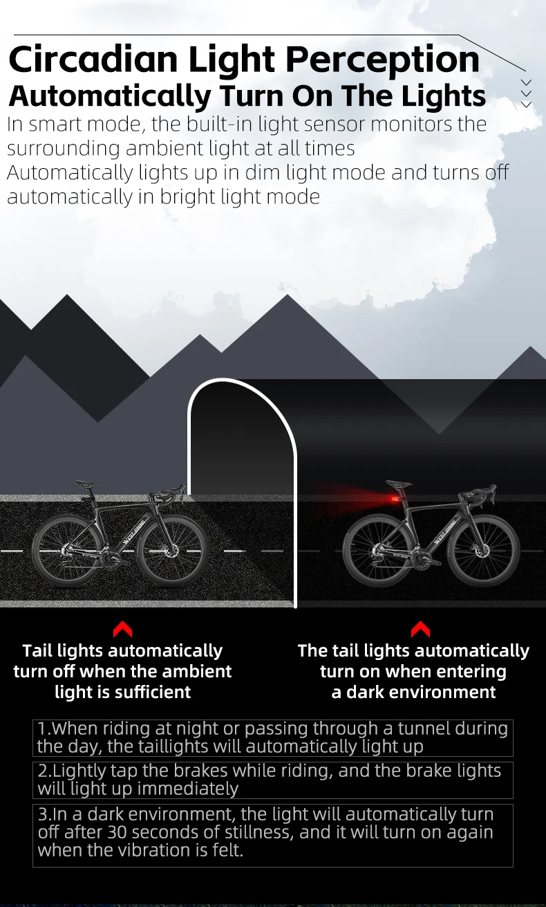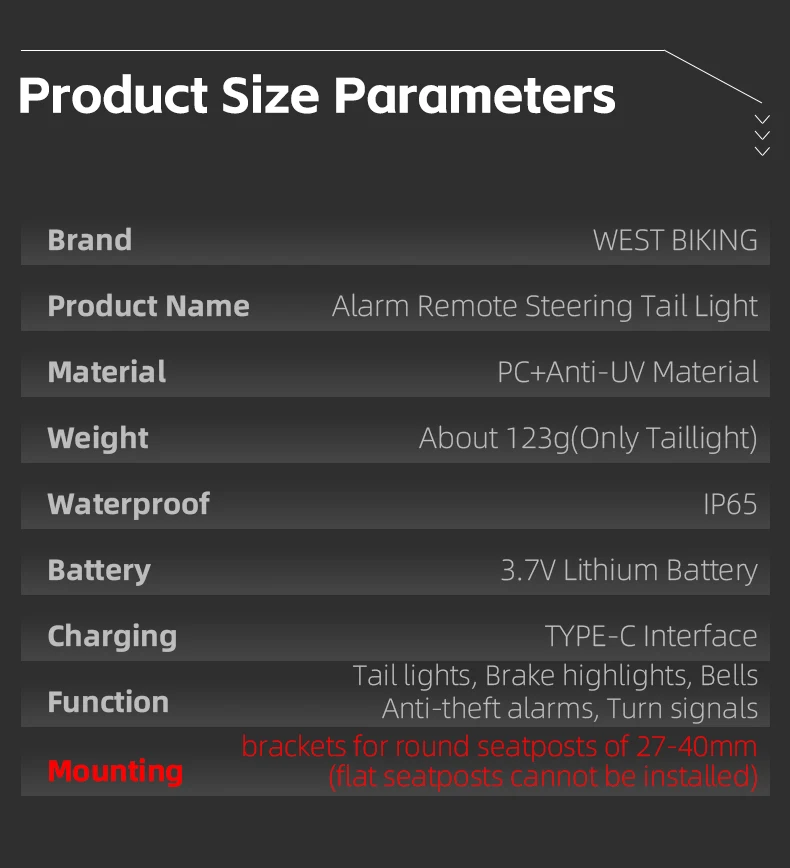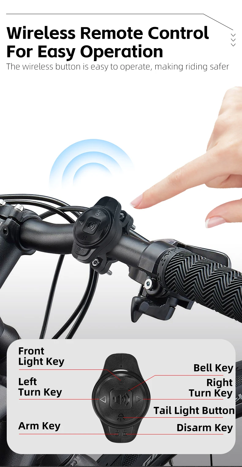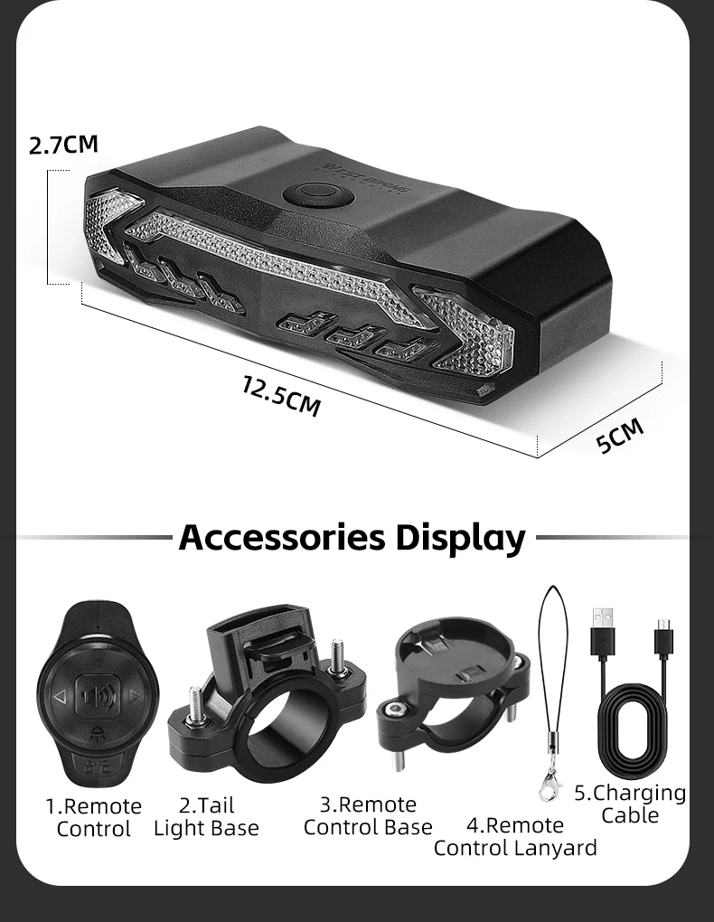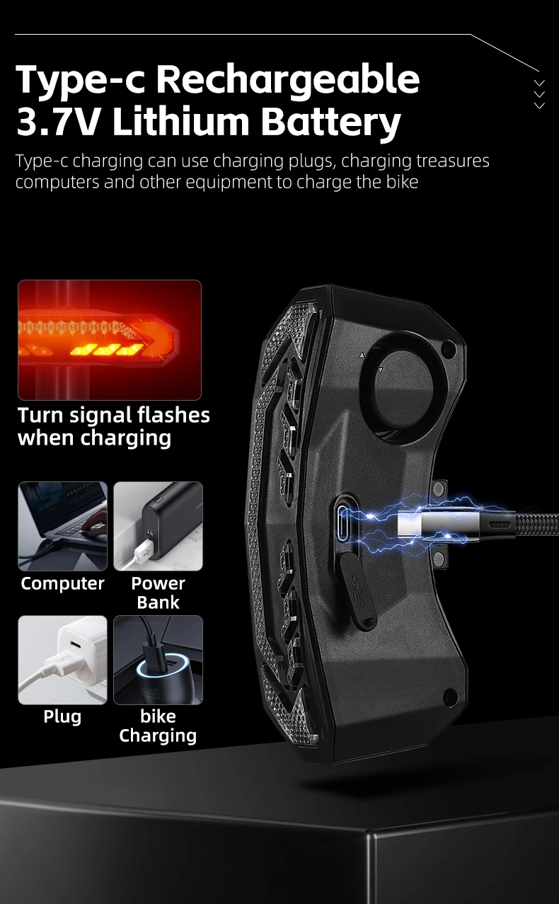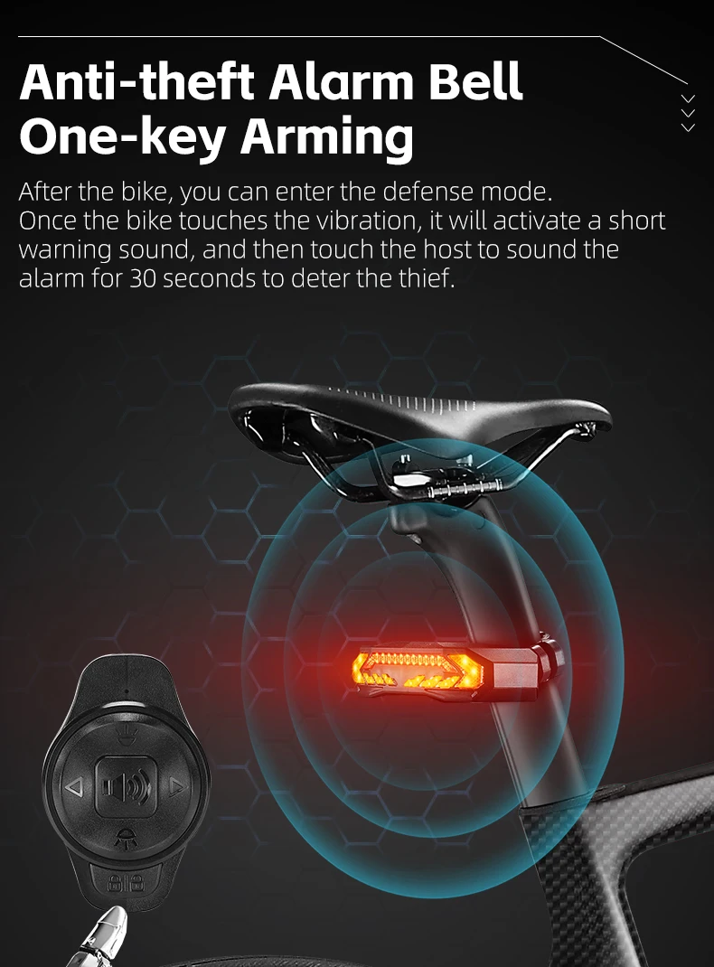 Bike Alarm Taillight Battery:18650 lithium battery,standby time 4-8 months