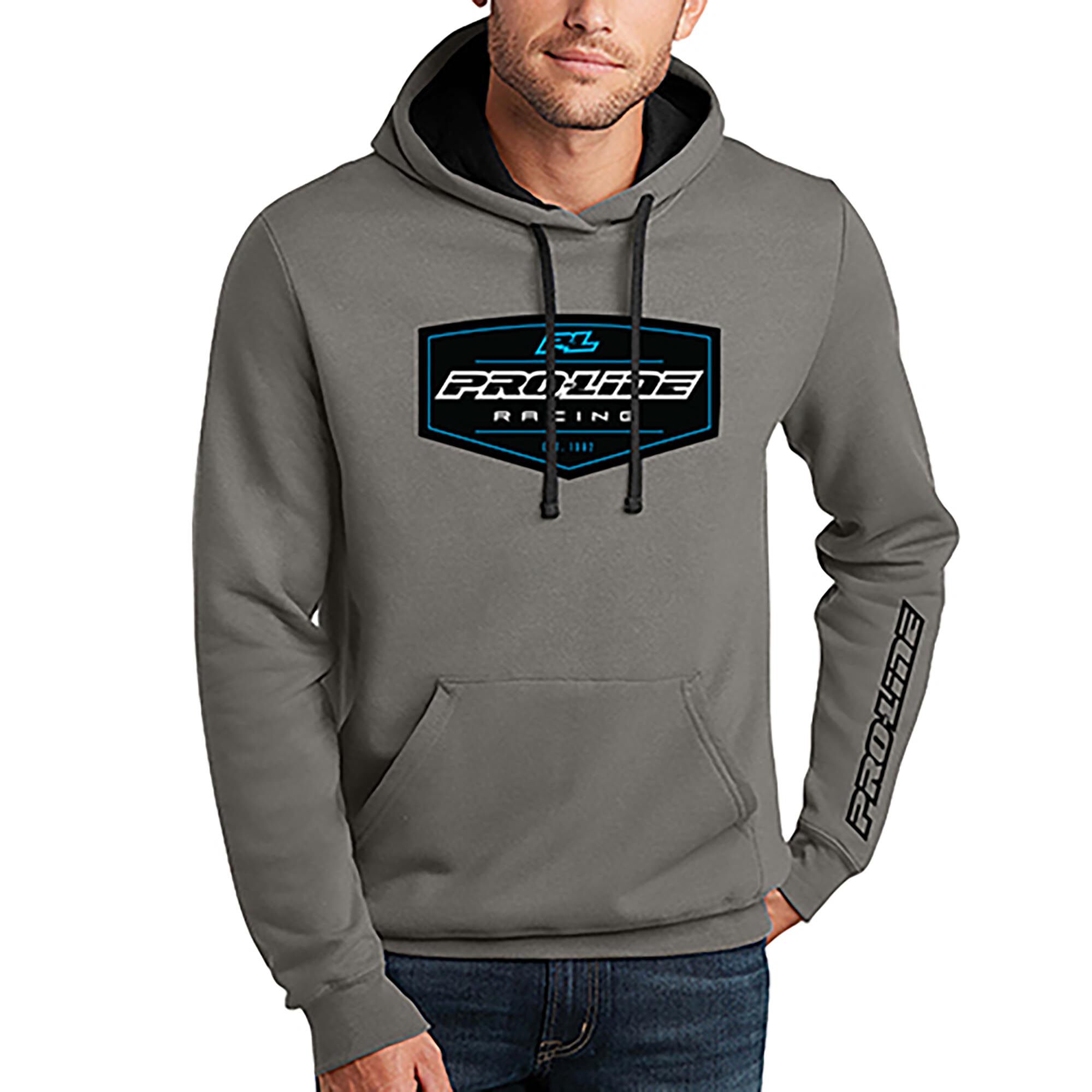 This is a Pro-Line Racing 986401 Pro-Line Crest Grey Hoodie - Small.