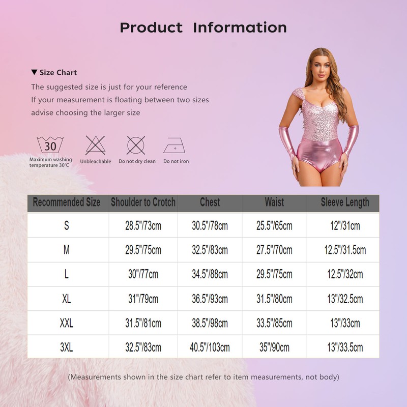 Made from a blend of polyester, sequins, and spandex, this bodysuit offers flexibility and a comfortable stretch, adapting well to various body movements.