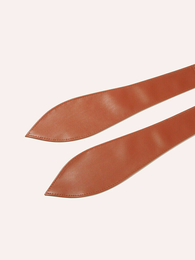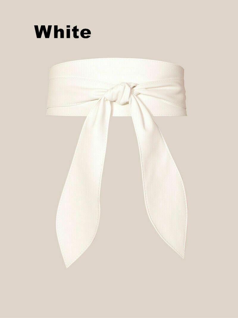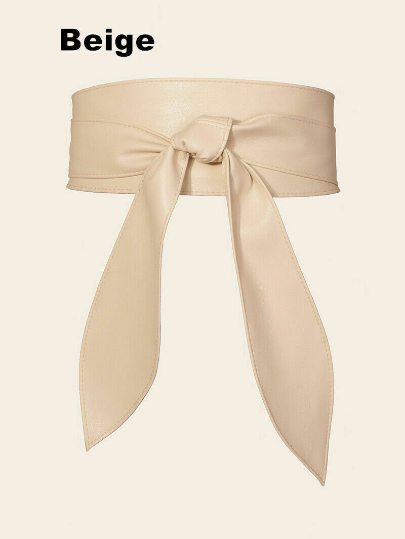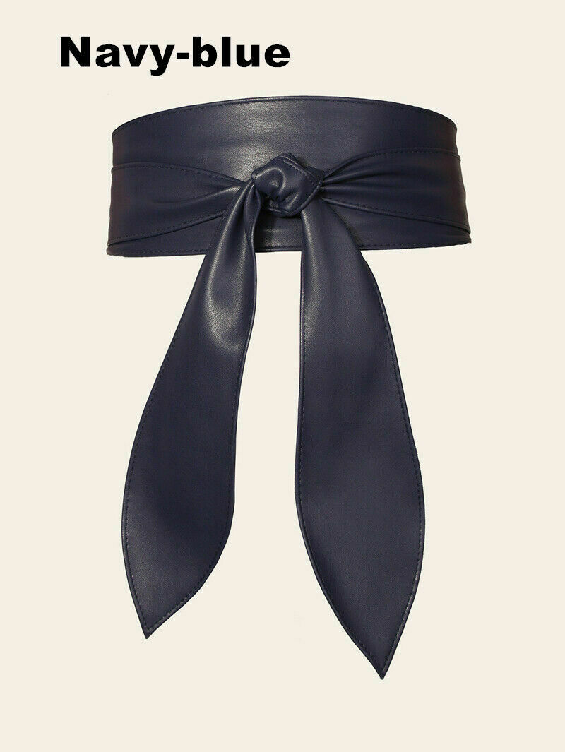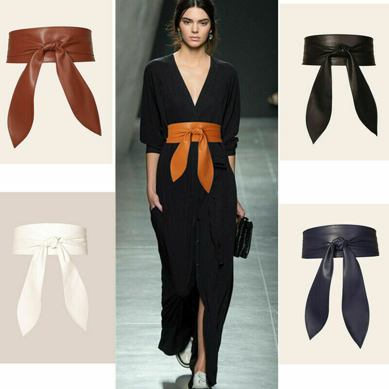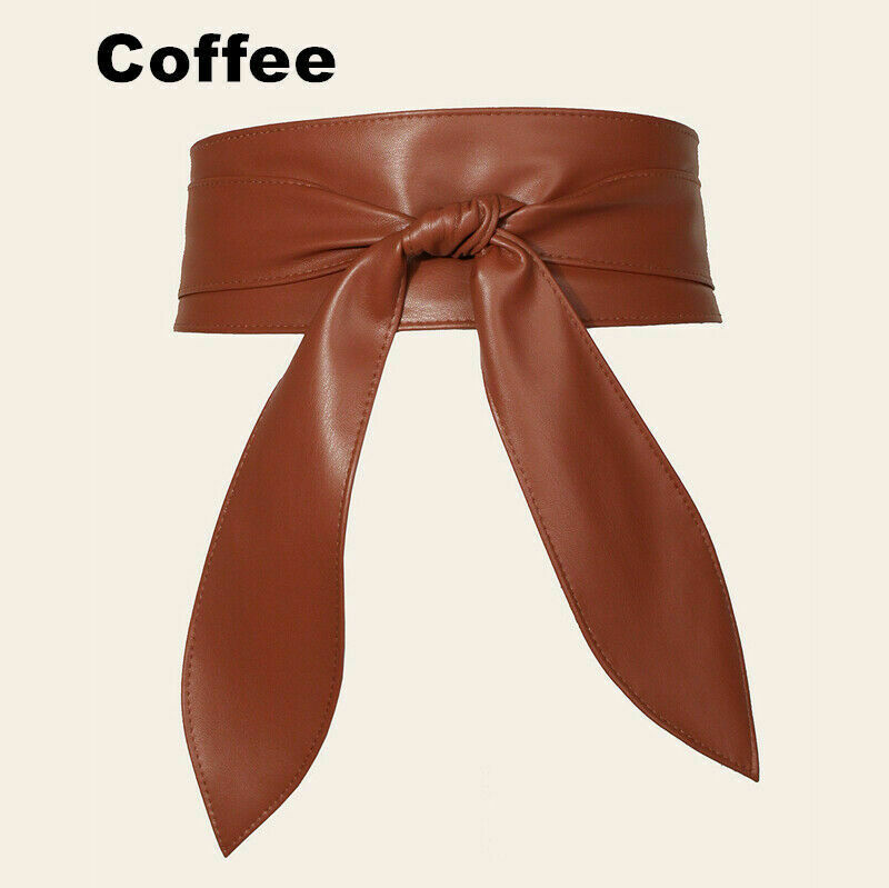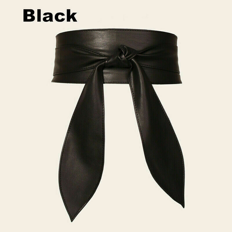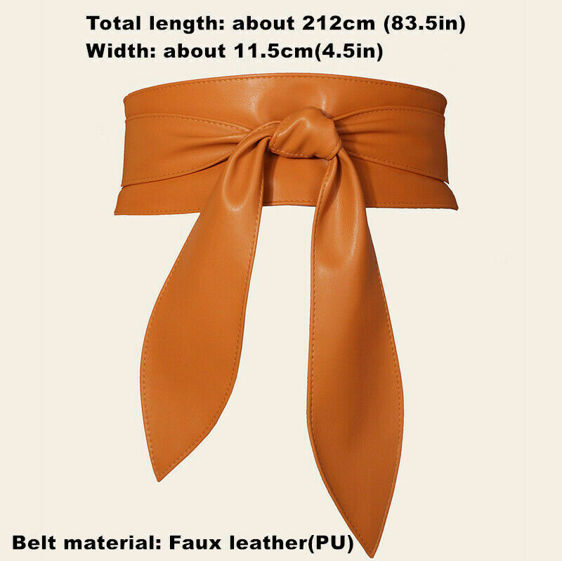 Women Fashion Faux Leather Wide Waist Belt Wrap Around Self Tie waistband